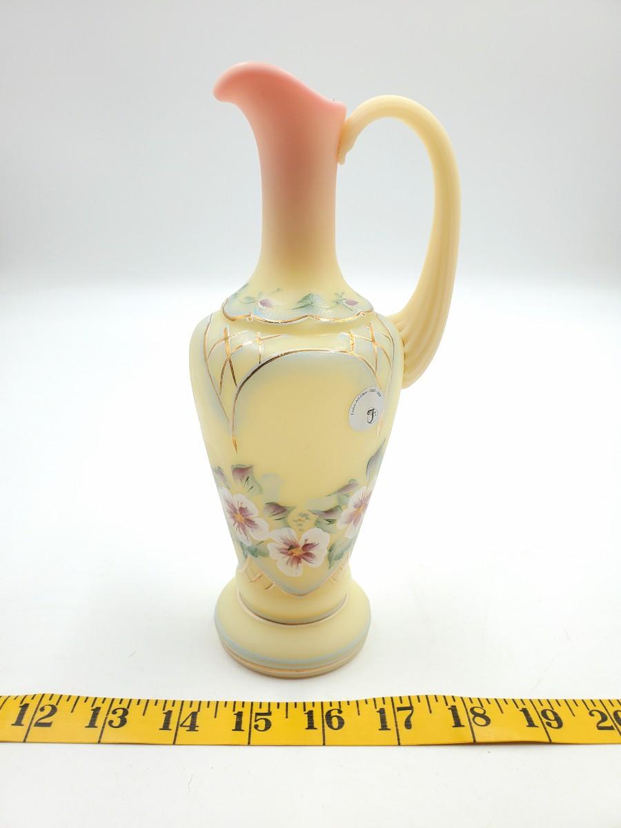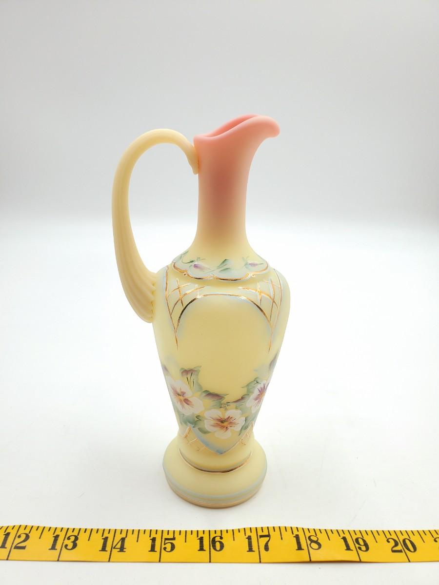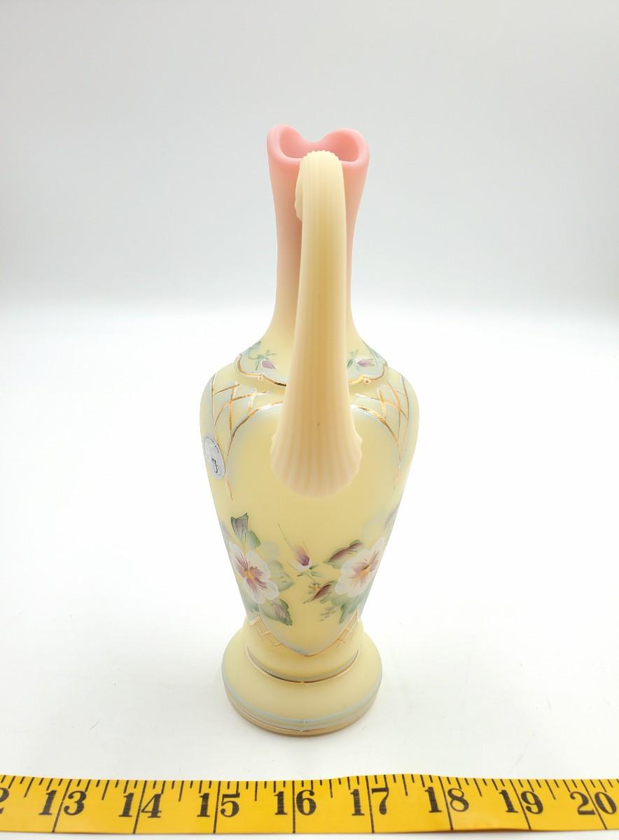 Very pretty Fenton yellow burmese "Rose Bed" ewer limited edition #1402/2750, in very good condition. Signed.