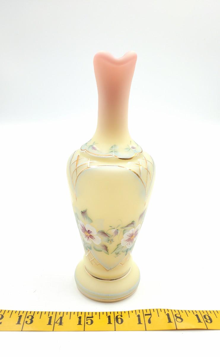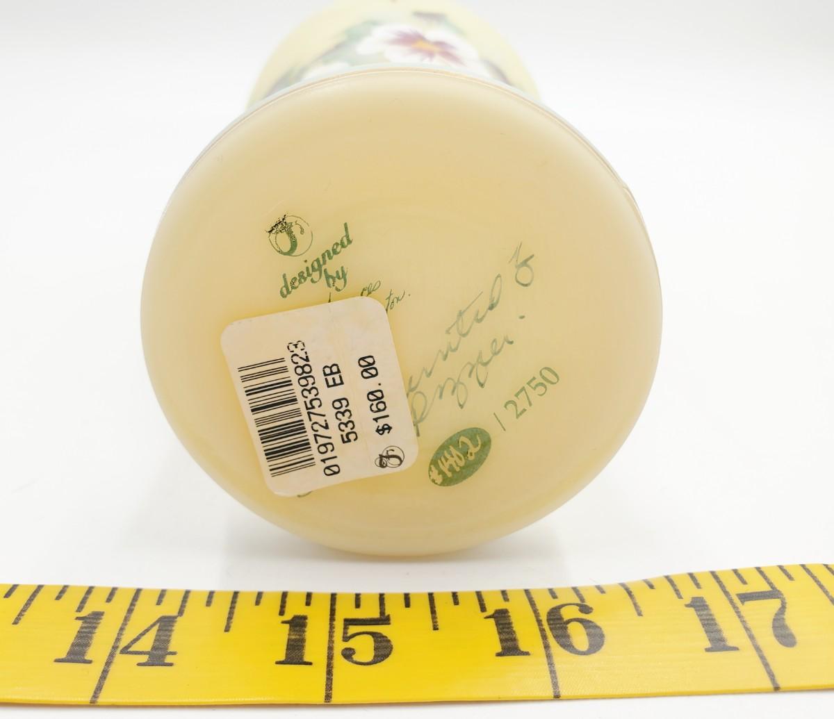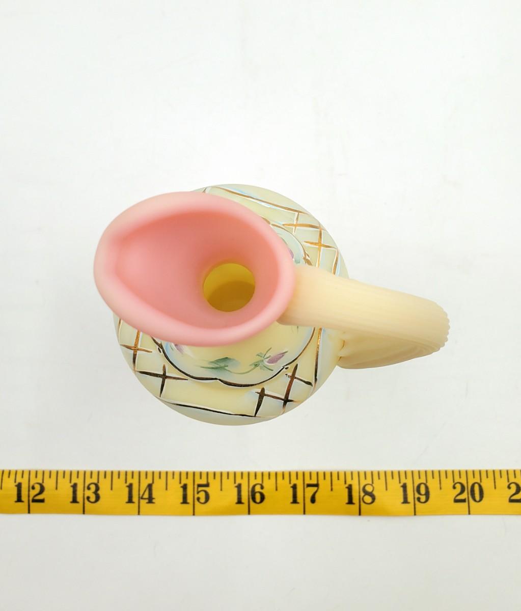 Very pretty Fenton yellow burmese "Rose Bed" ewer limited edition #1402/2750, in very good condition. Signed.