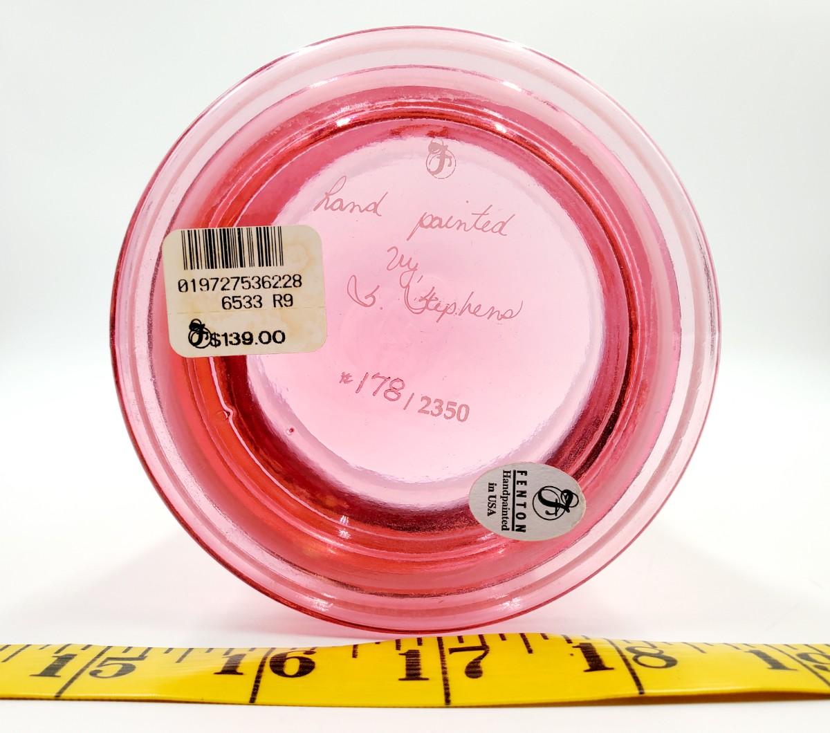 Fenton limited edition #178/2350, hand painted and signed. Beautiful condition, original box included. The box has been written on ans has some damage on top but in otherwise good condition.