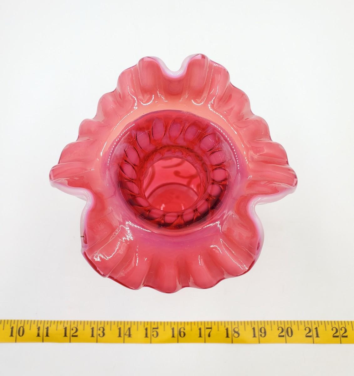 FENTON 1995 LIMITED EDITION CRANBERRY OPAL BUTTONS AND BRAIDS VASE WITH ORIGINAL BOX
