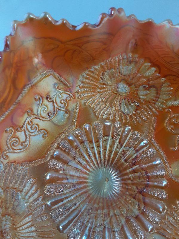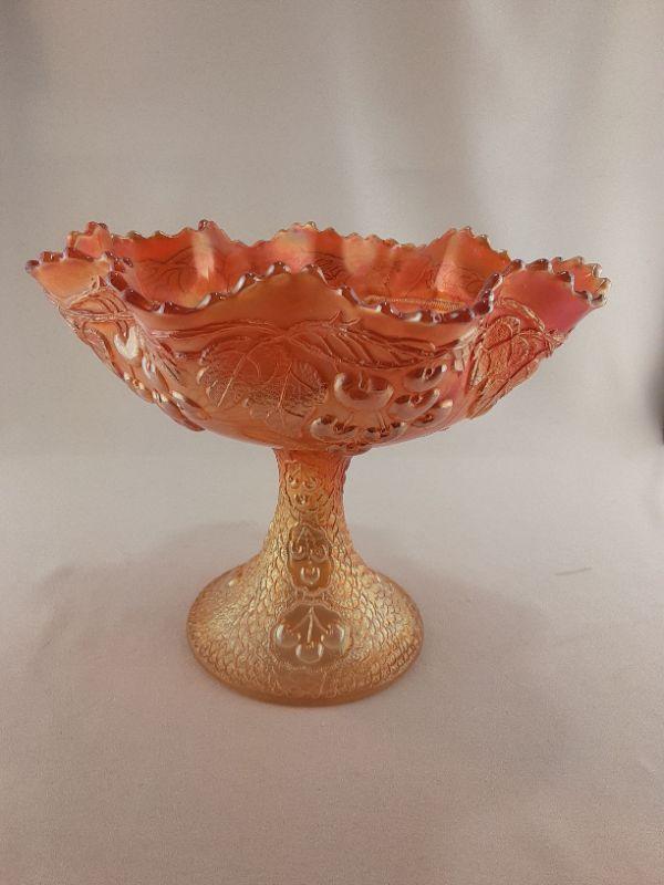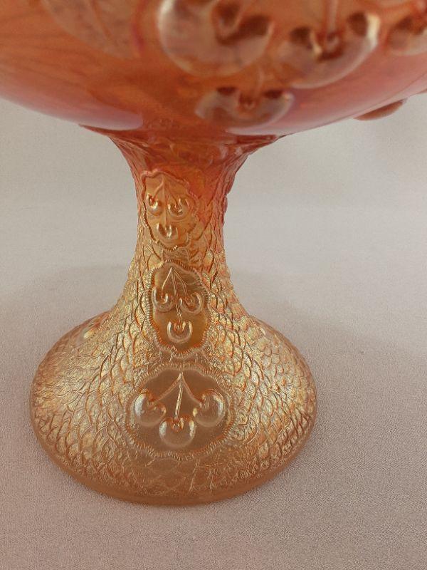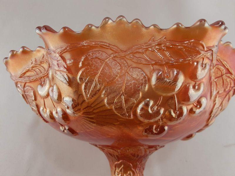 Fenton Marigold Mikado Cherries Carnival Glass Compote