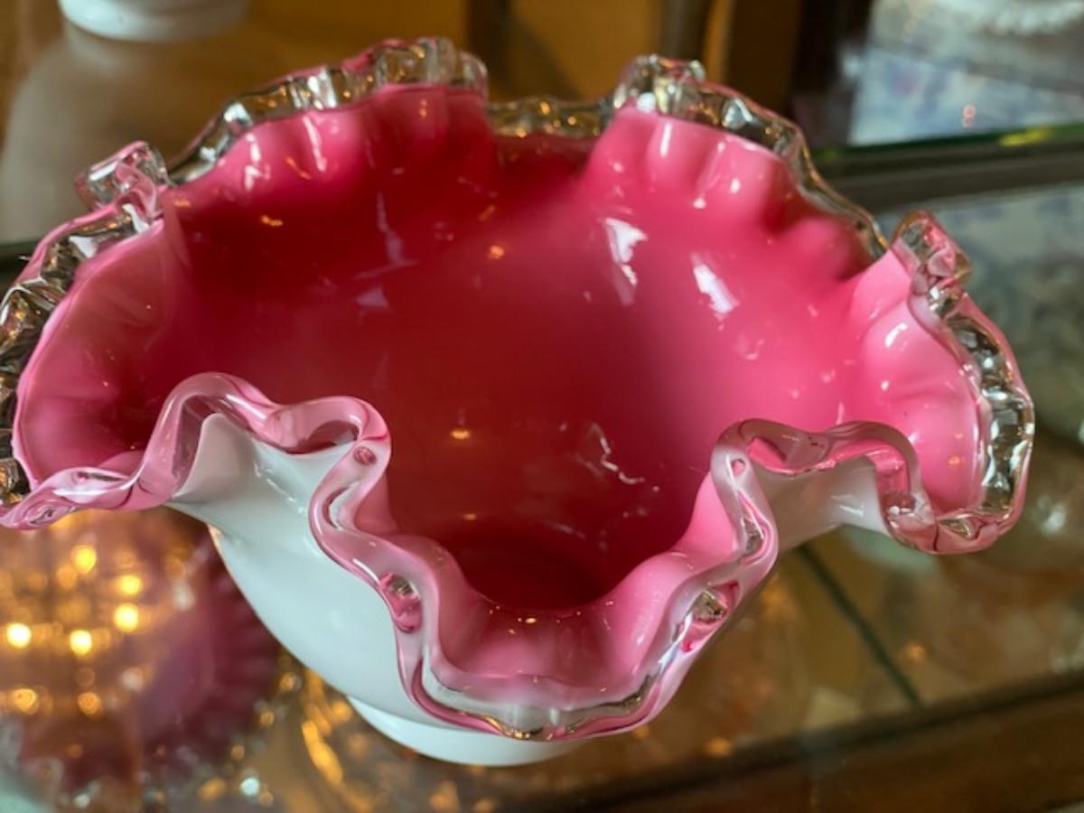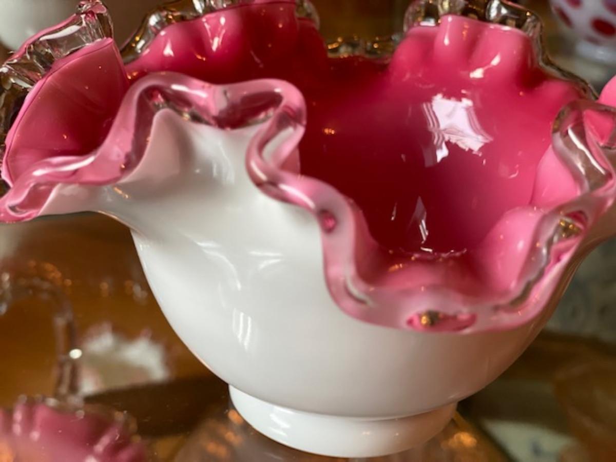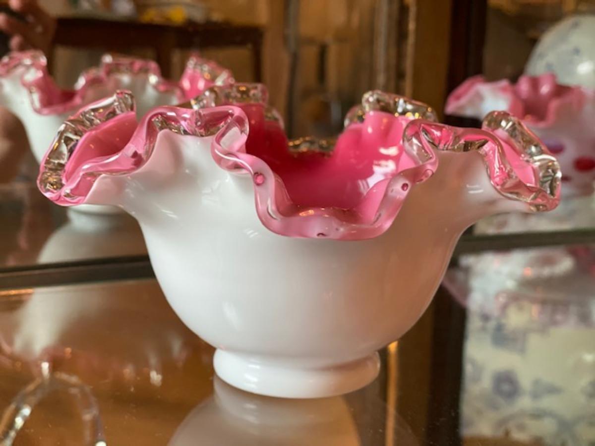 Fenton Milk Glass Pink Bowl w/Ruffles 7"