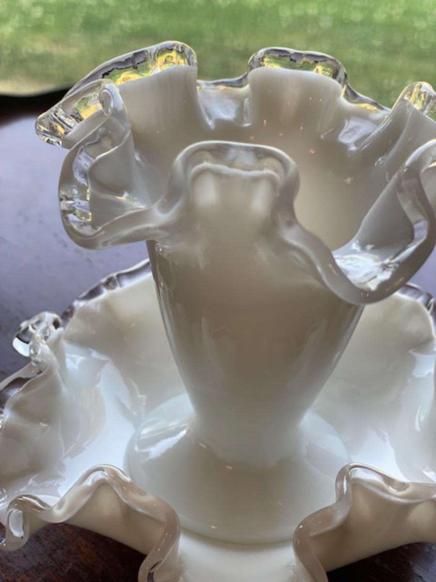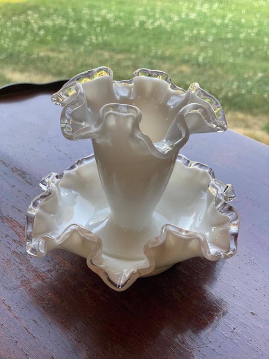 Fenton Milk Glass Silver Crest Vase and Nut Bowl