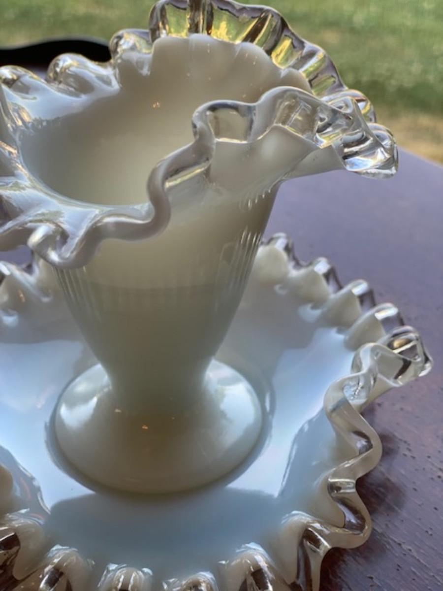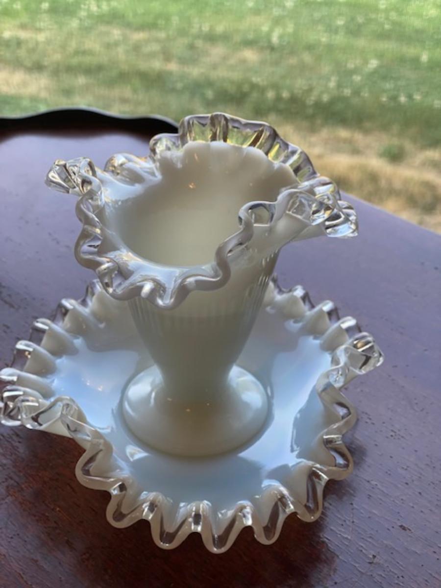 Fenton Milk Glass Silver Crest Vase and Nut Bowl