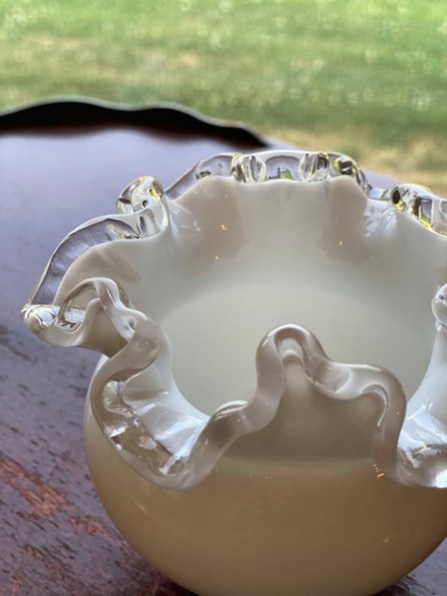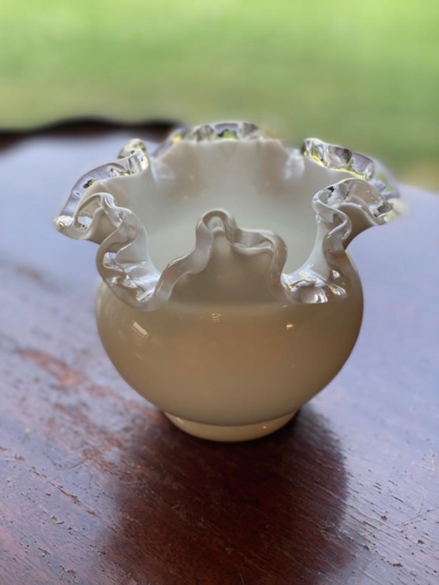 Fenton Milk Glass Silver Crest Small Rose Bowl