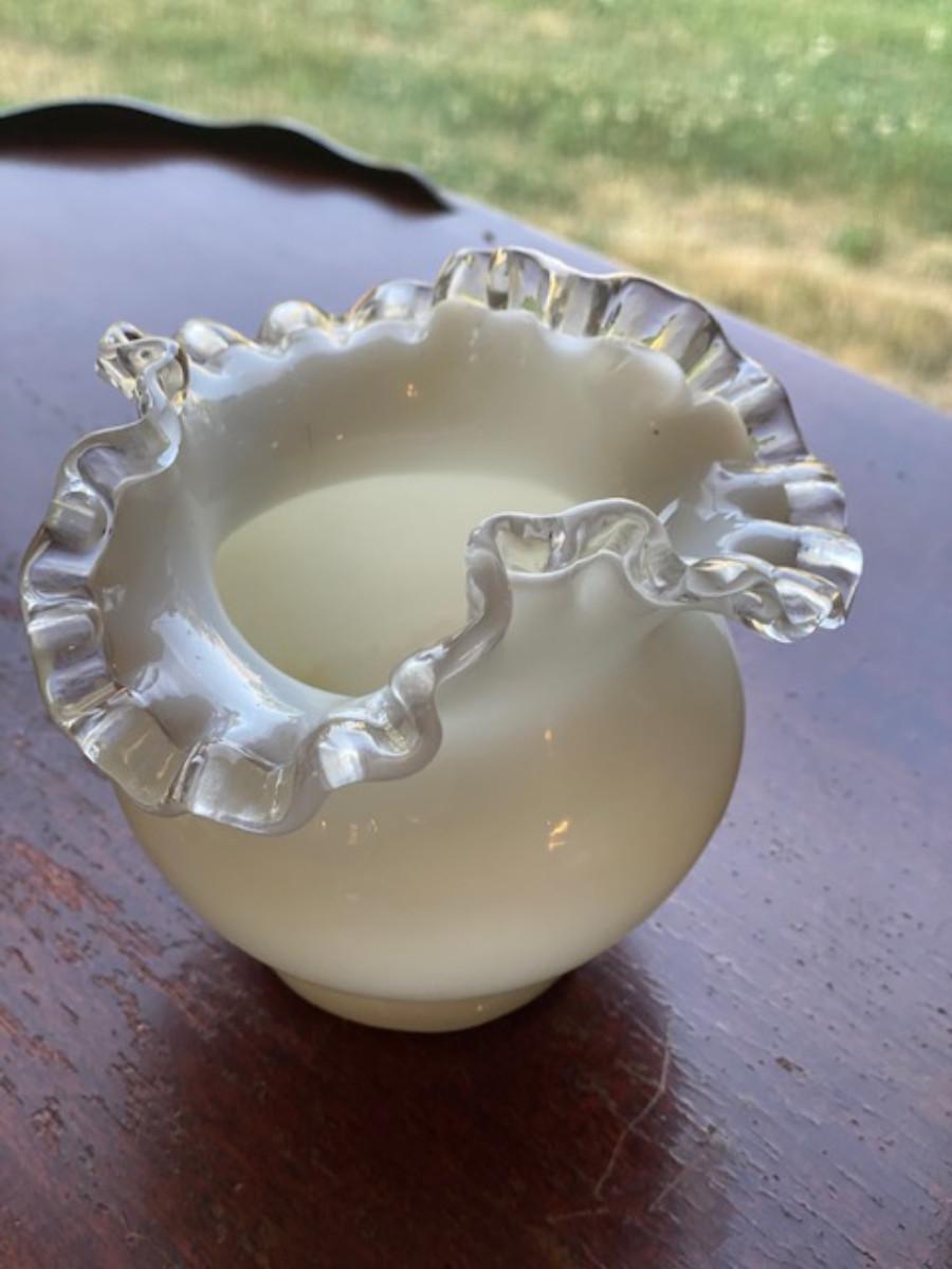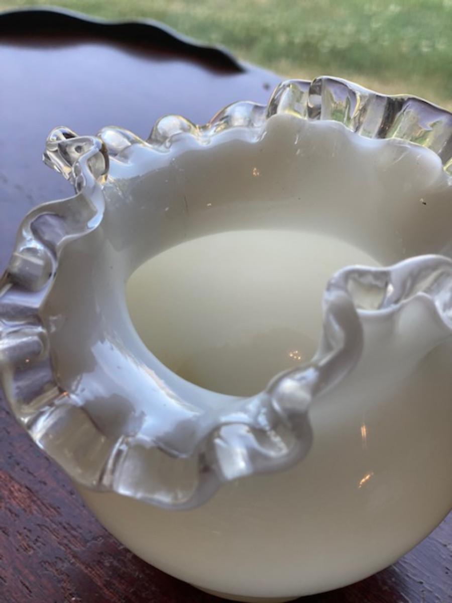 Fenton Milk Glass Silver Crest Small Rose Bowl