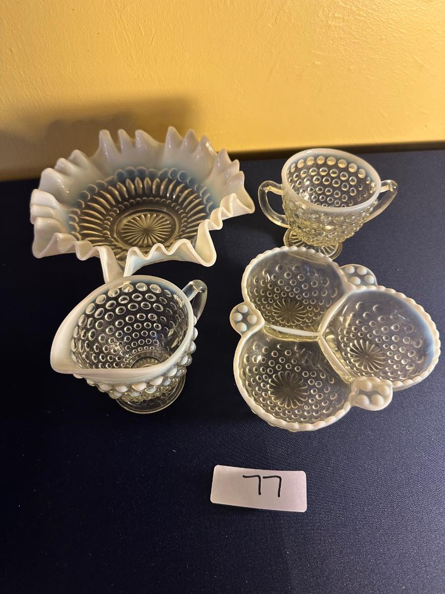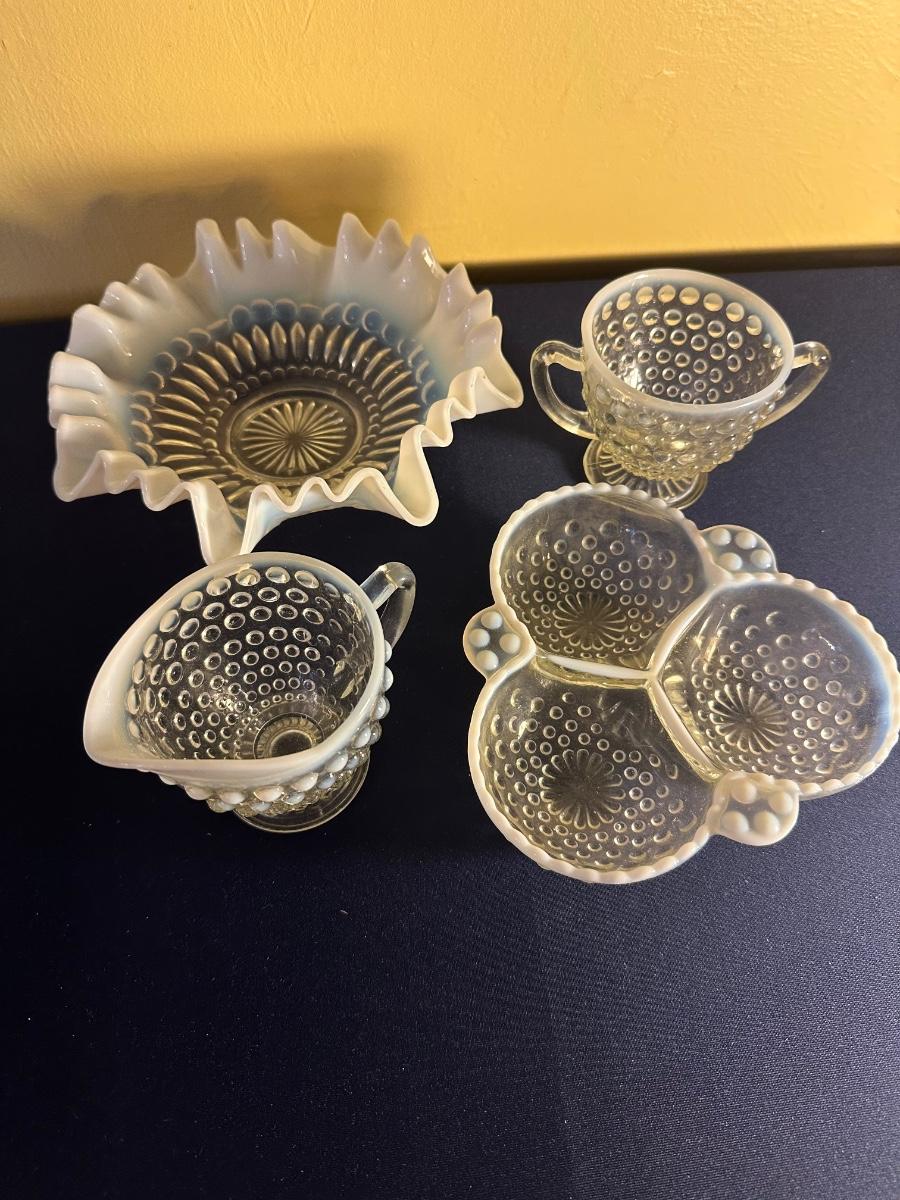 FENTON OPALESCENT WHITE HOBNAIL GLASS LOT