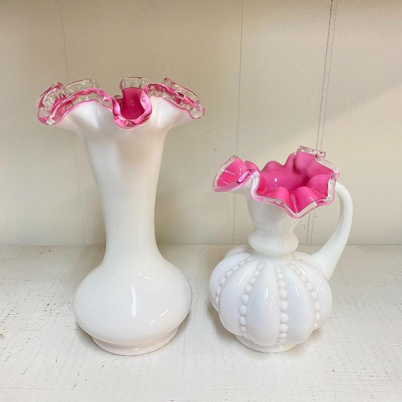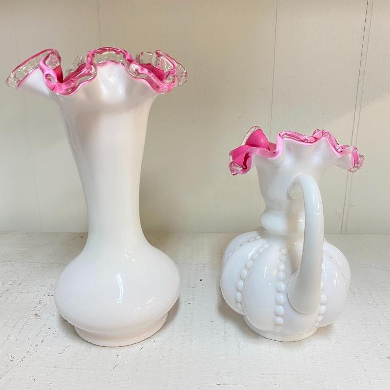 Fenton Peach Crest Jug & Vase
