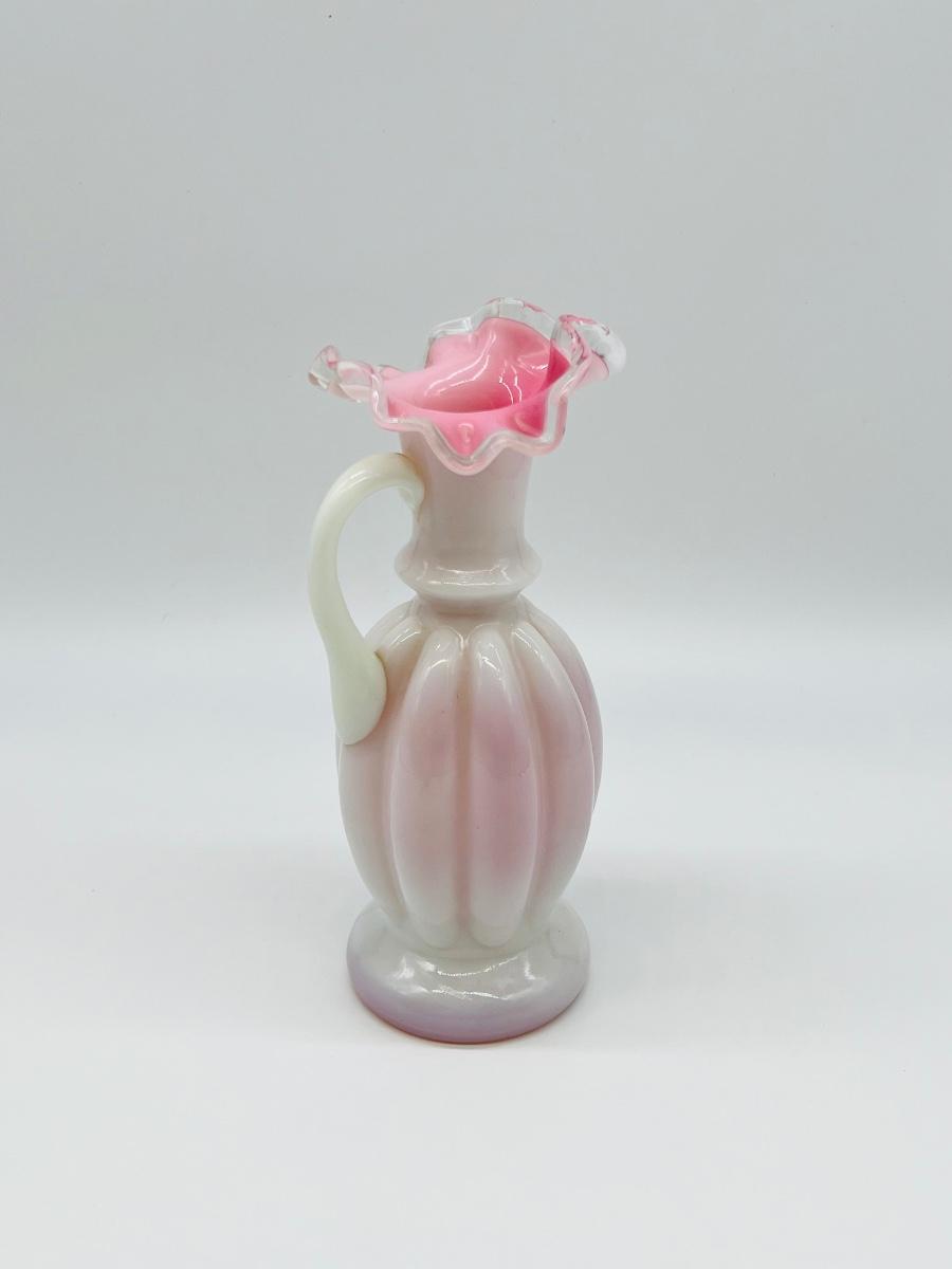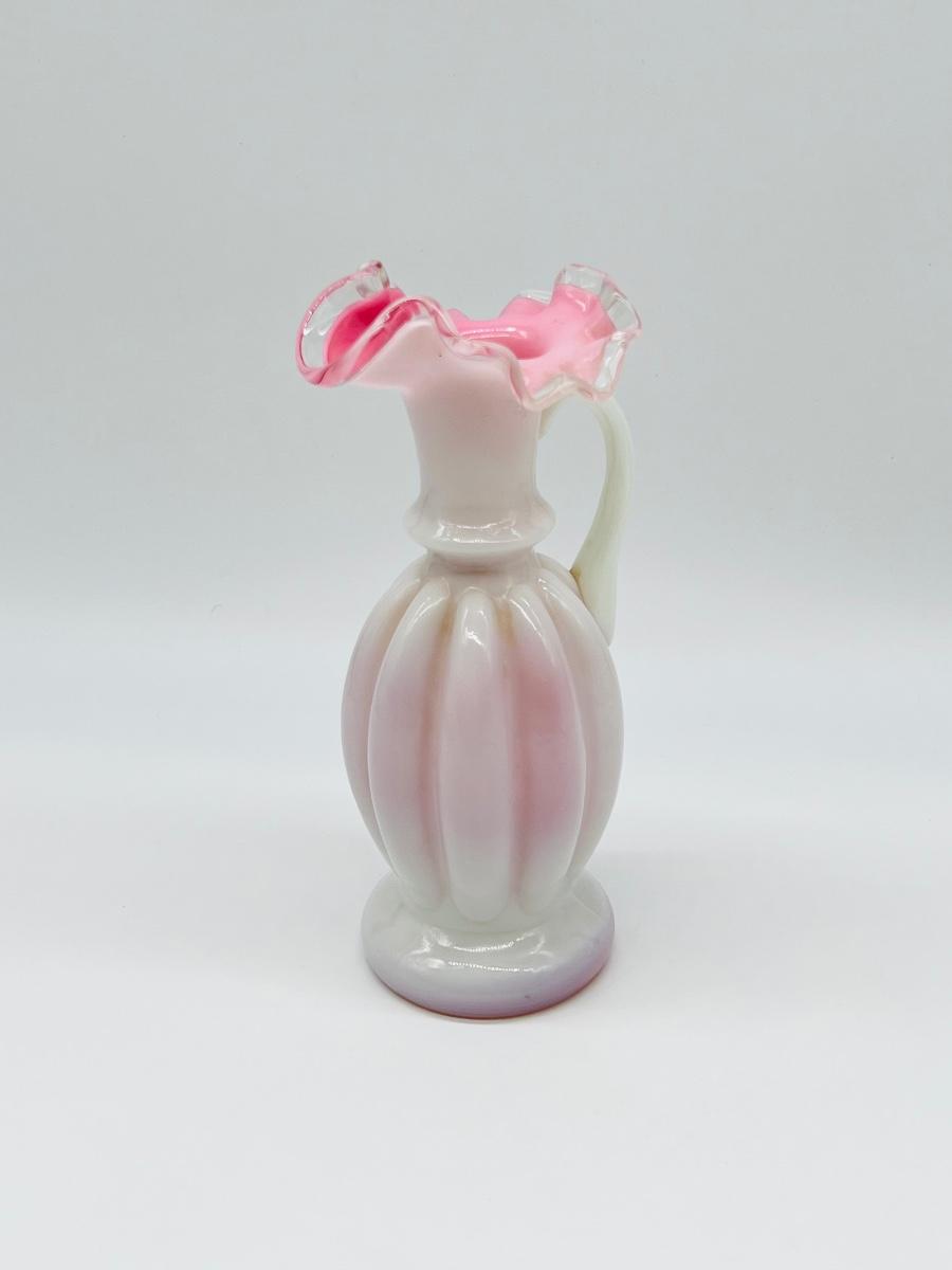 FENTON ~ Peach Crest ~ Milk Glass Melon Ruffled Pitcher ~ Excellent