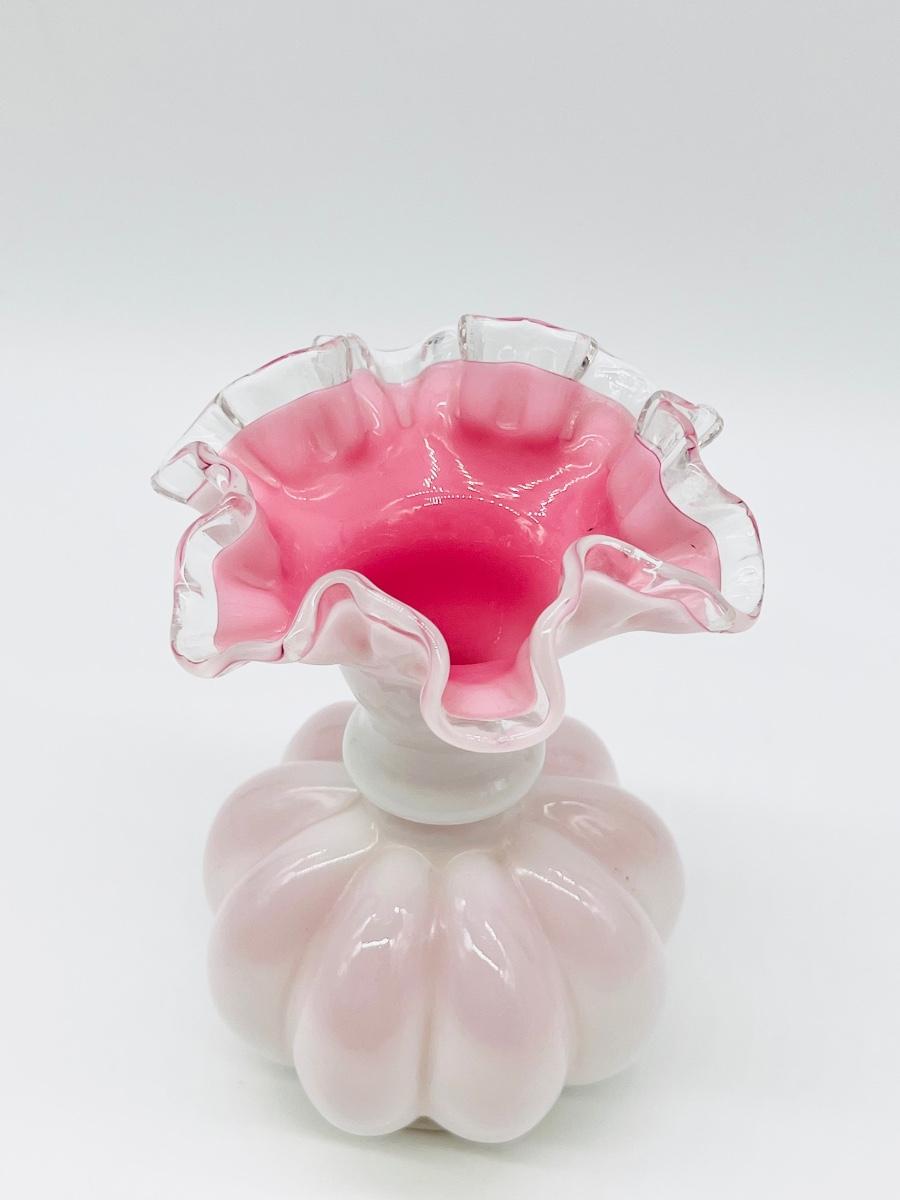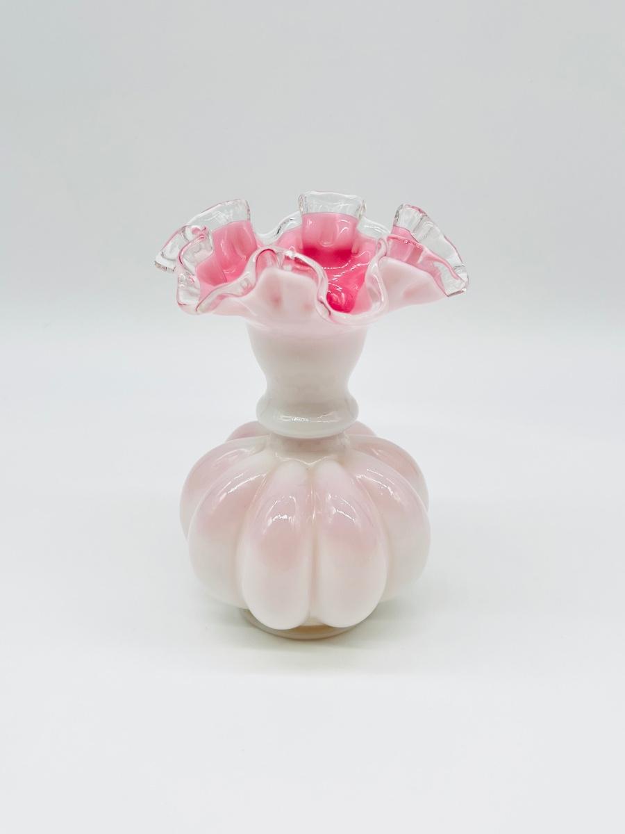 FENTON ~ Peach Crest ~ Milk Glass Melon Ruffled Vase ~ Excellent