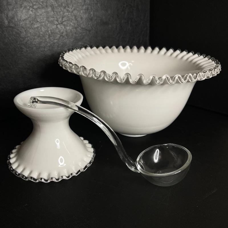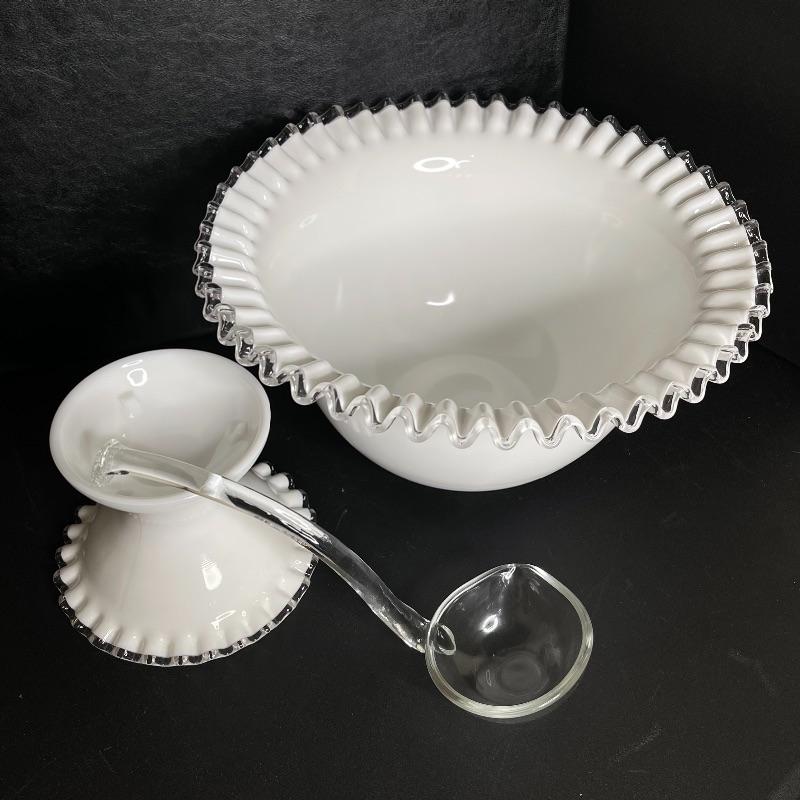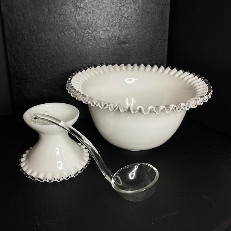 "B" Gorgeous Fenton Silver Crest Pedestal Punch Bowl