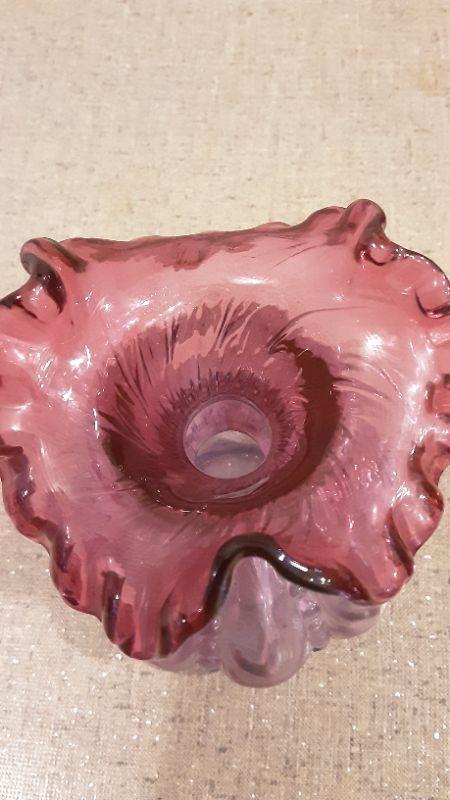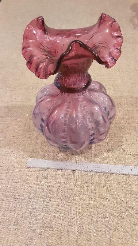 Fenton Pink Art Glass Beaded Melon Tri Fold Ruffled Top Vase