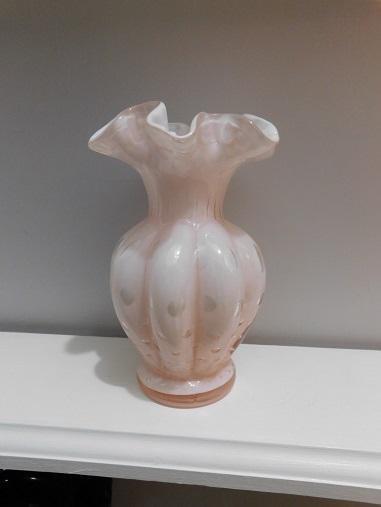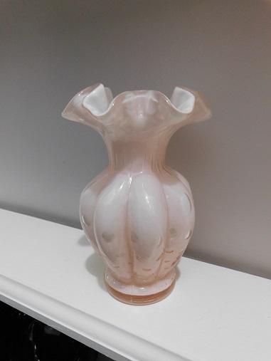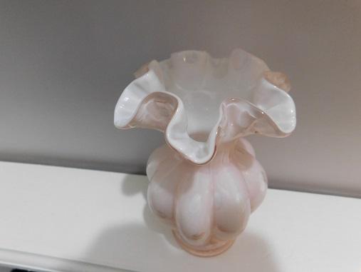 Fenton Pink Glass Ruffle Edge Vase 5"