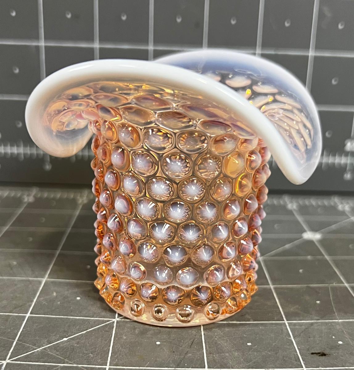 FENTON PINK OPUELESCENT TOP HAT 3"