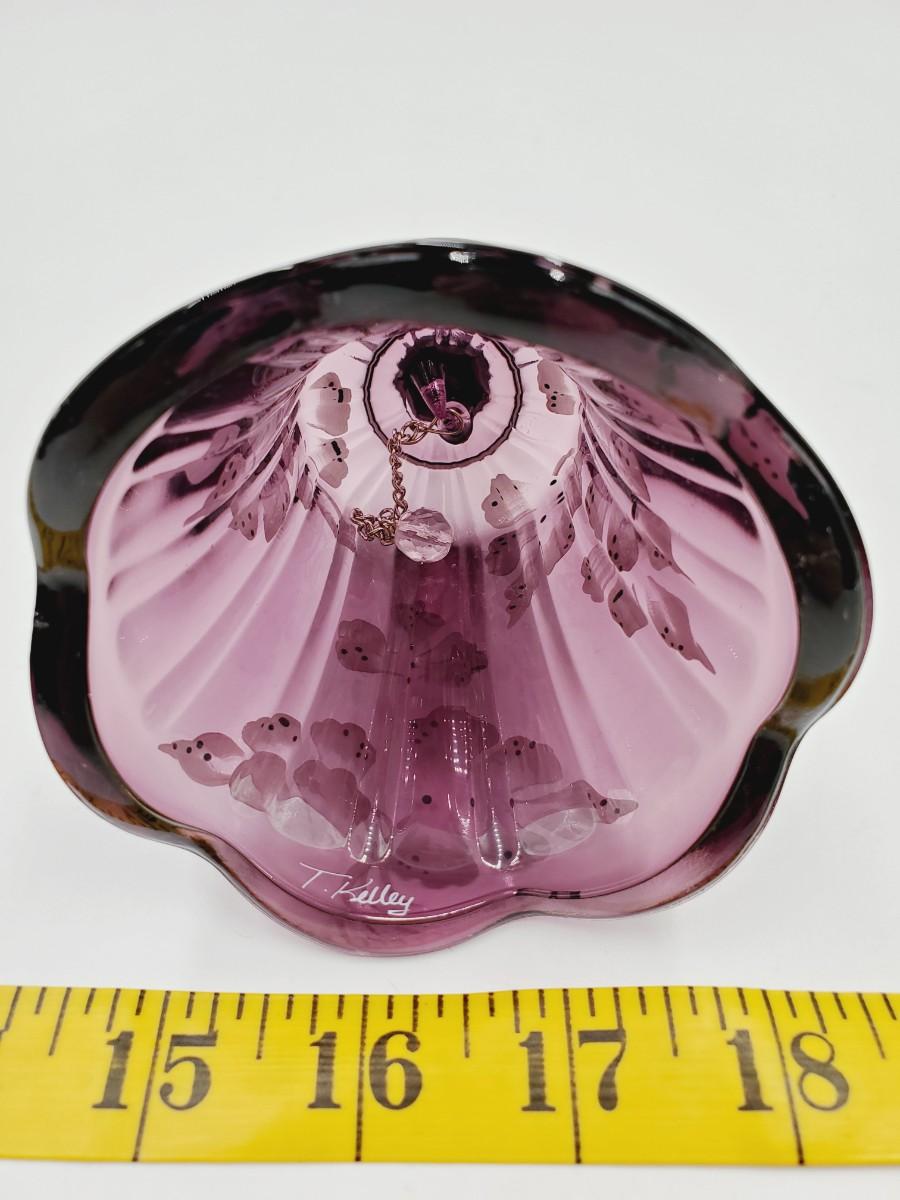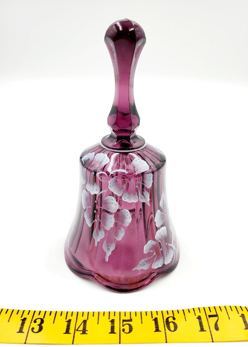 Very pretty Fenton bell, hand painted and signed. Fenton and what looks like 9 are stamped on inside of bell. Very good condition