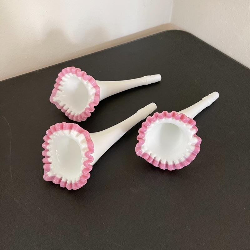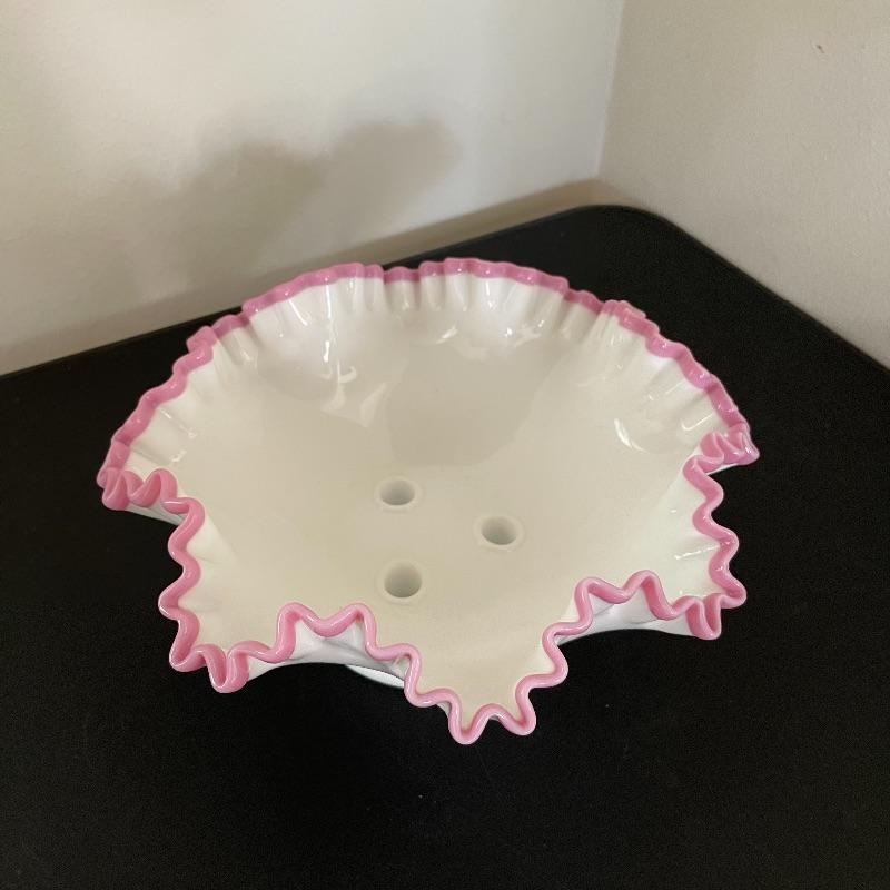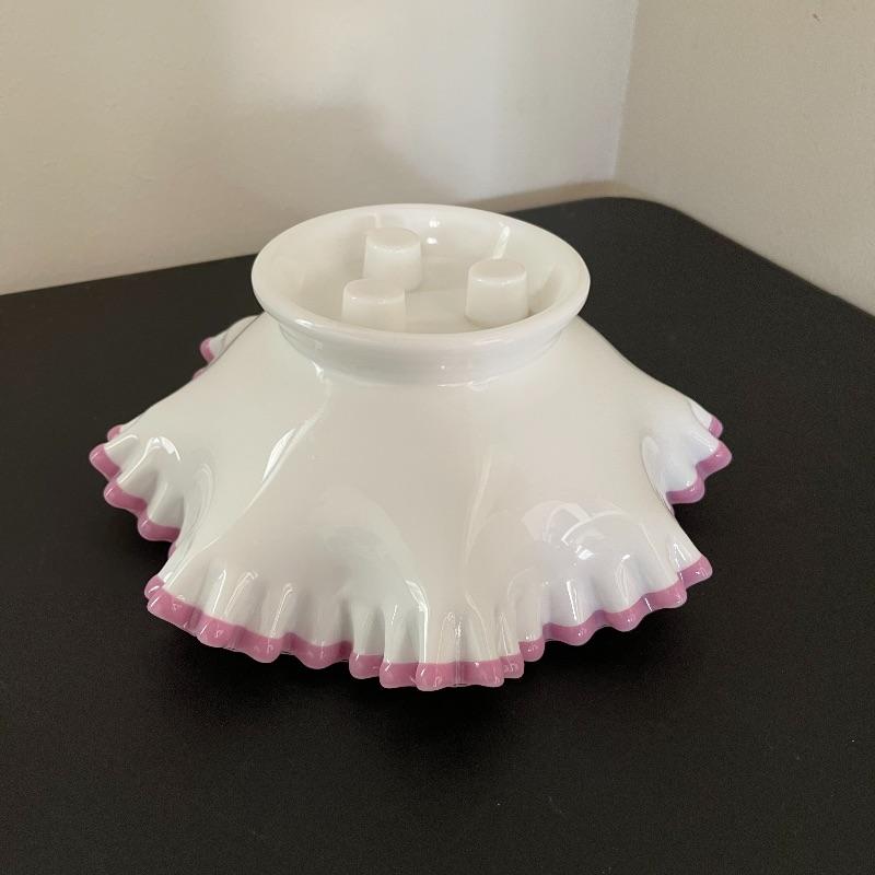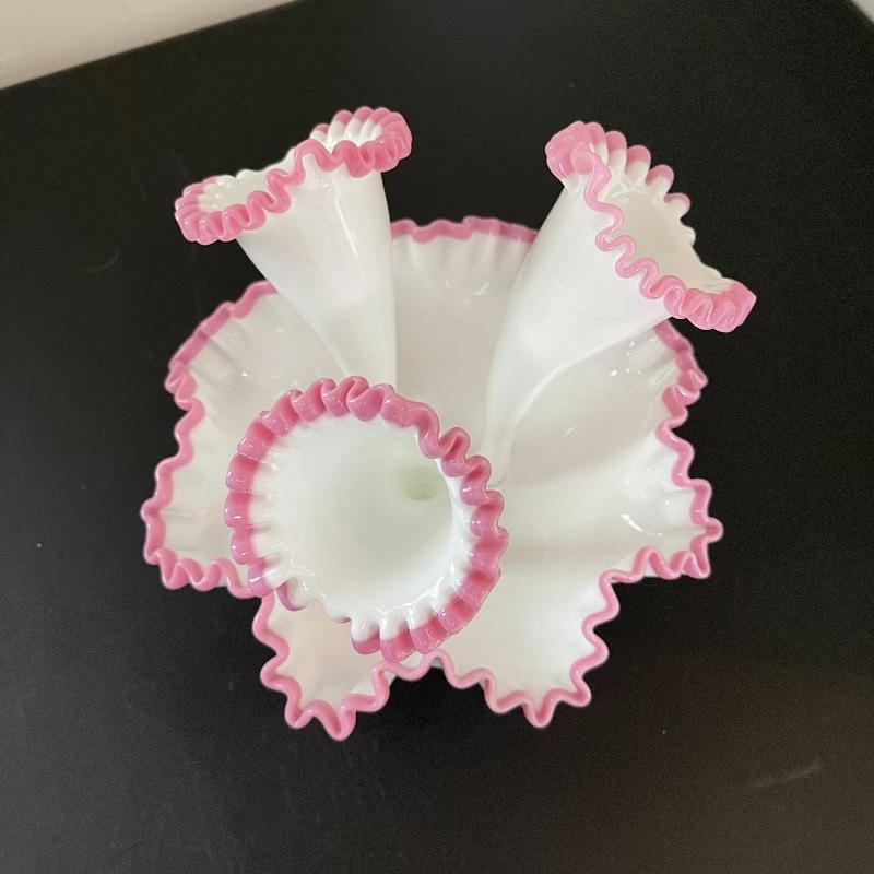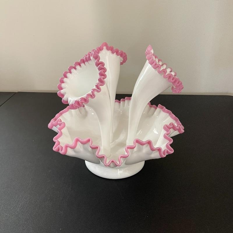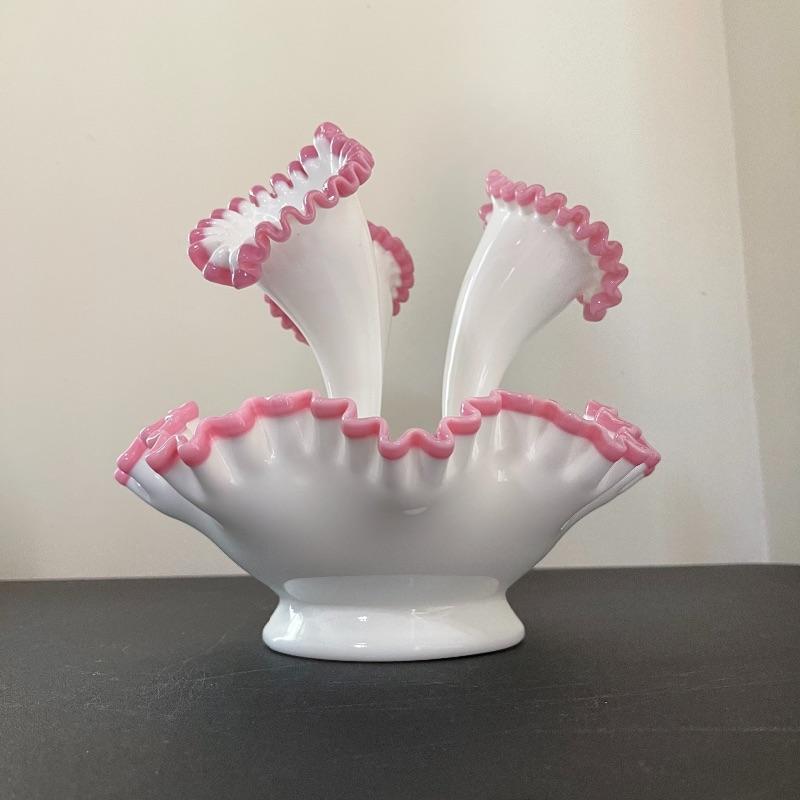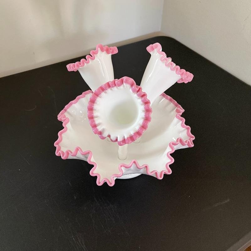 Fenton Pink Ribbon Edge Epergne with 3 Horns