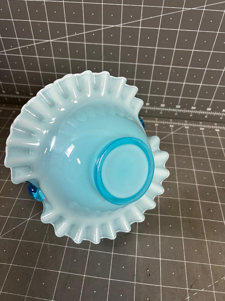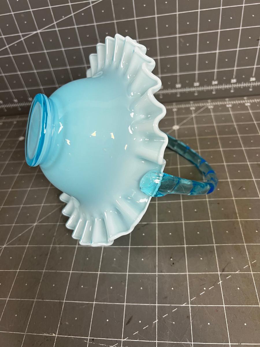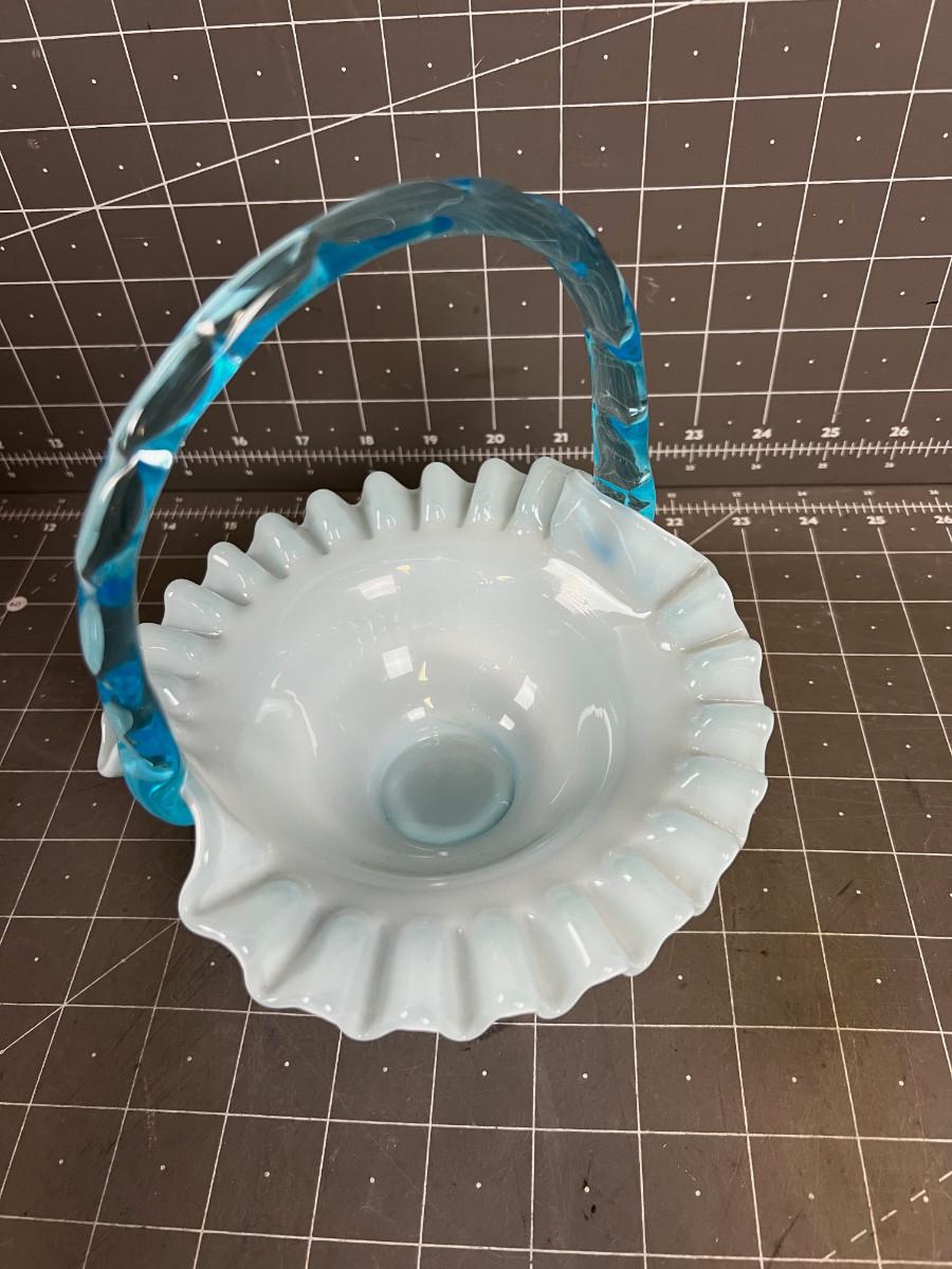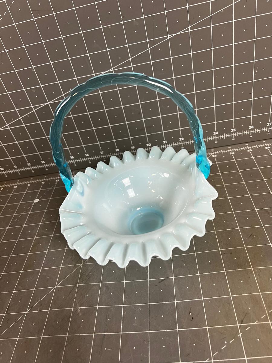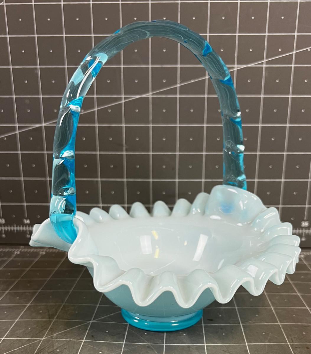 FENTON SAPPHIRE BLUE OPALESCENT GLASS BASKET