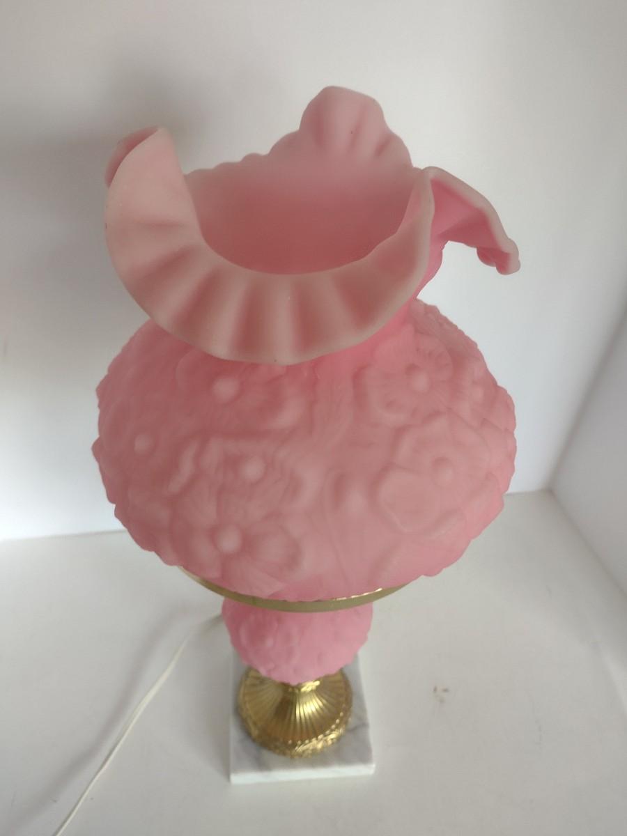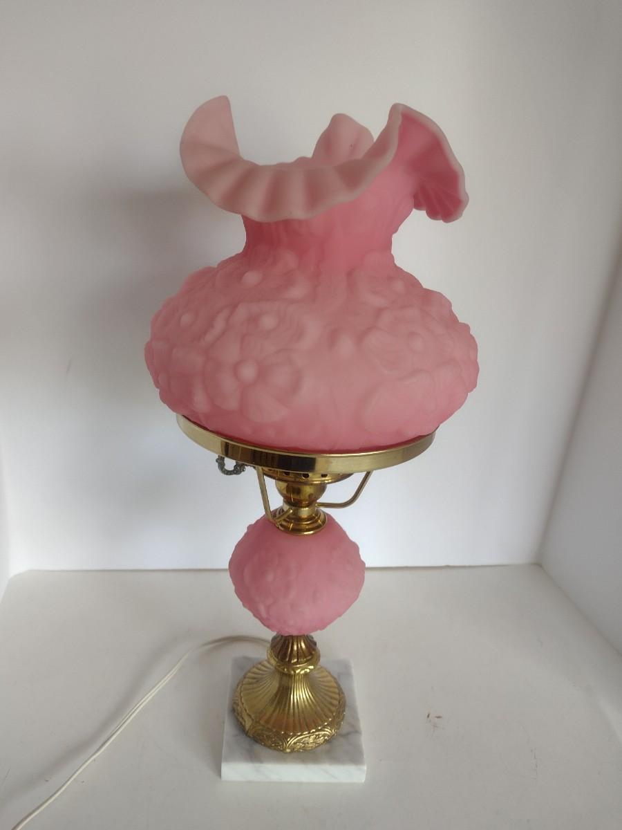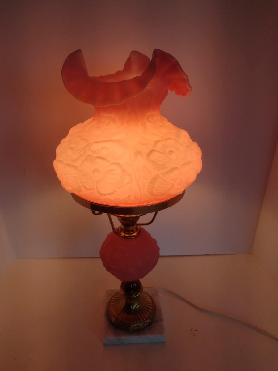 Fenton Satin Glass Pink Poppy Themed Electric Table Lamp