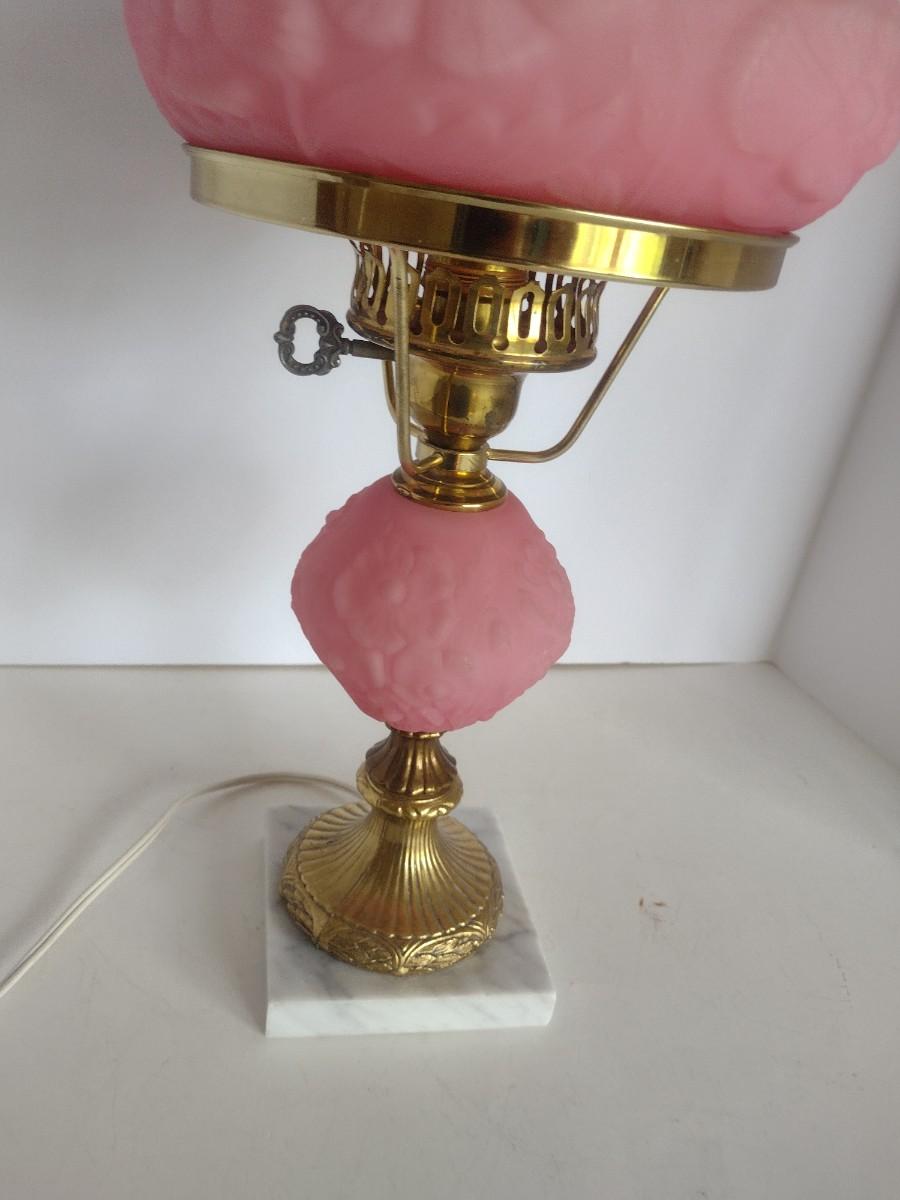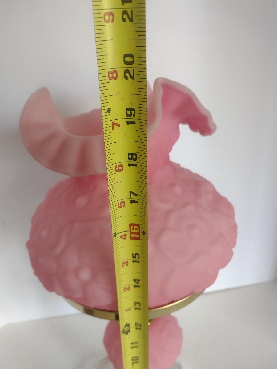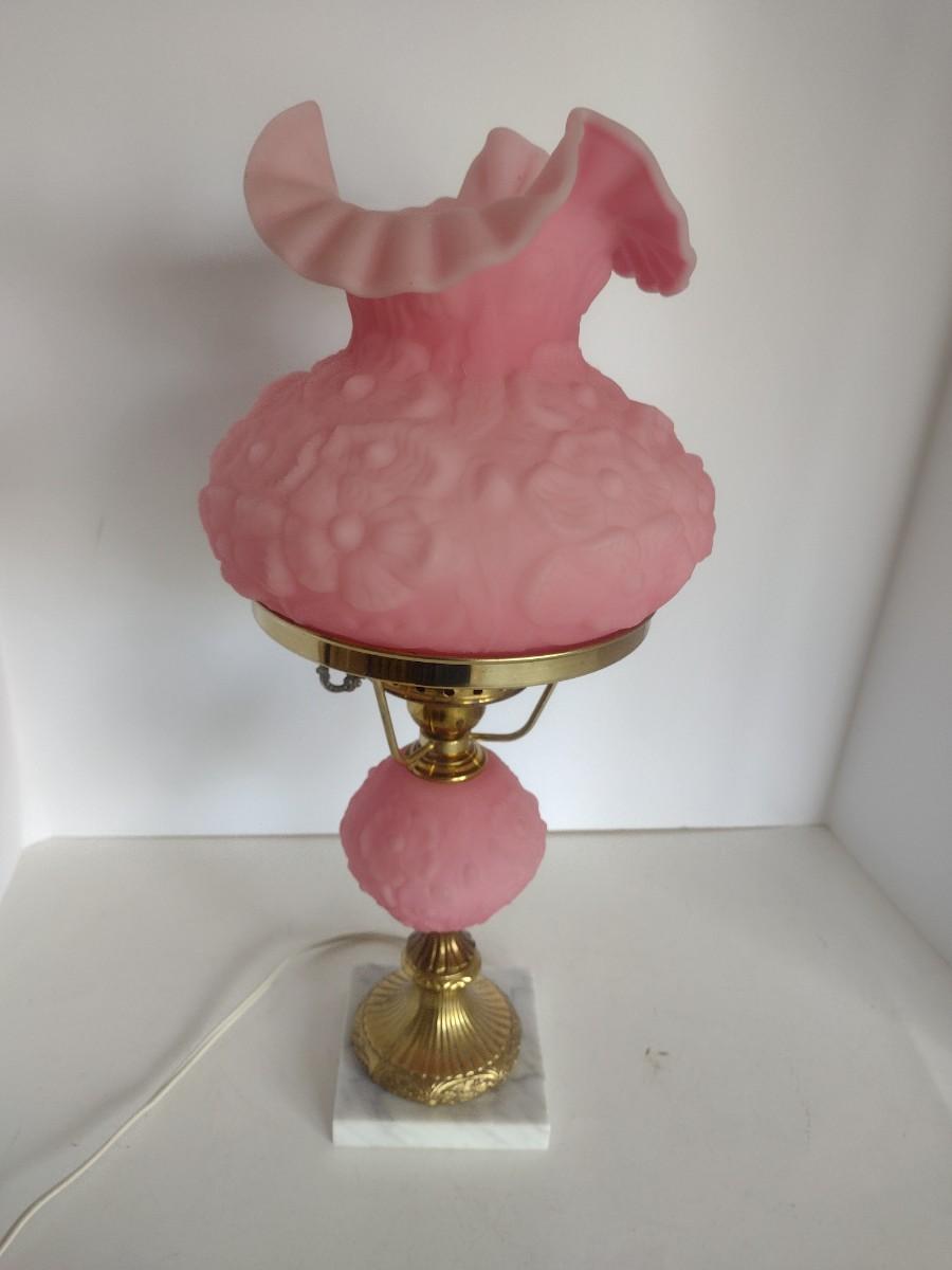 Fenton Satin Glass Pink Poppy Themed Electric Table Lamp
