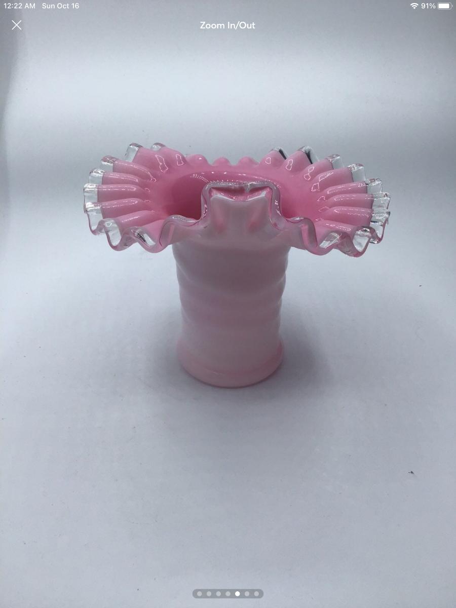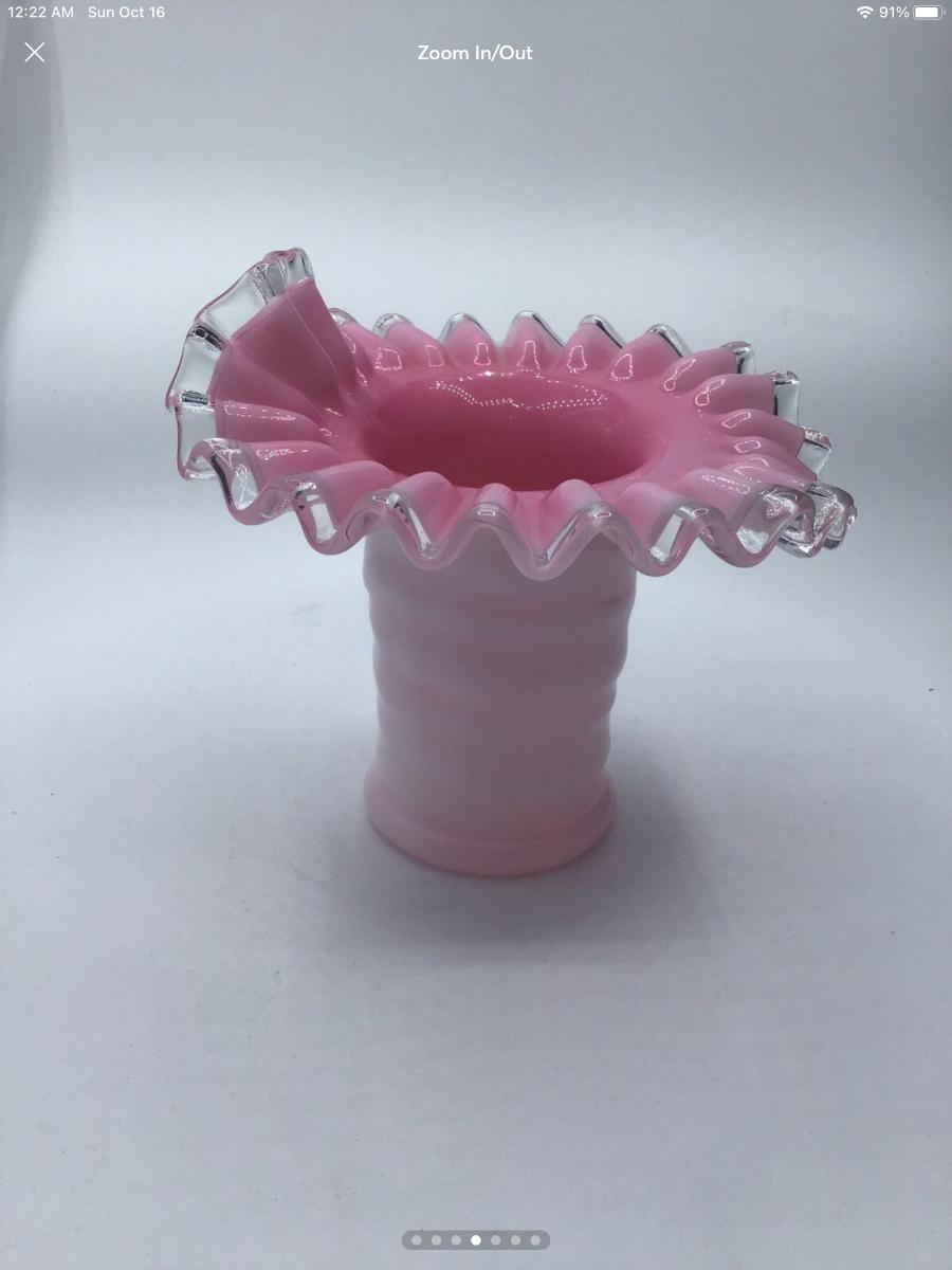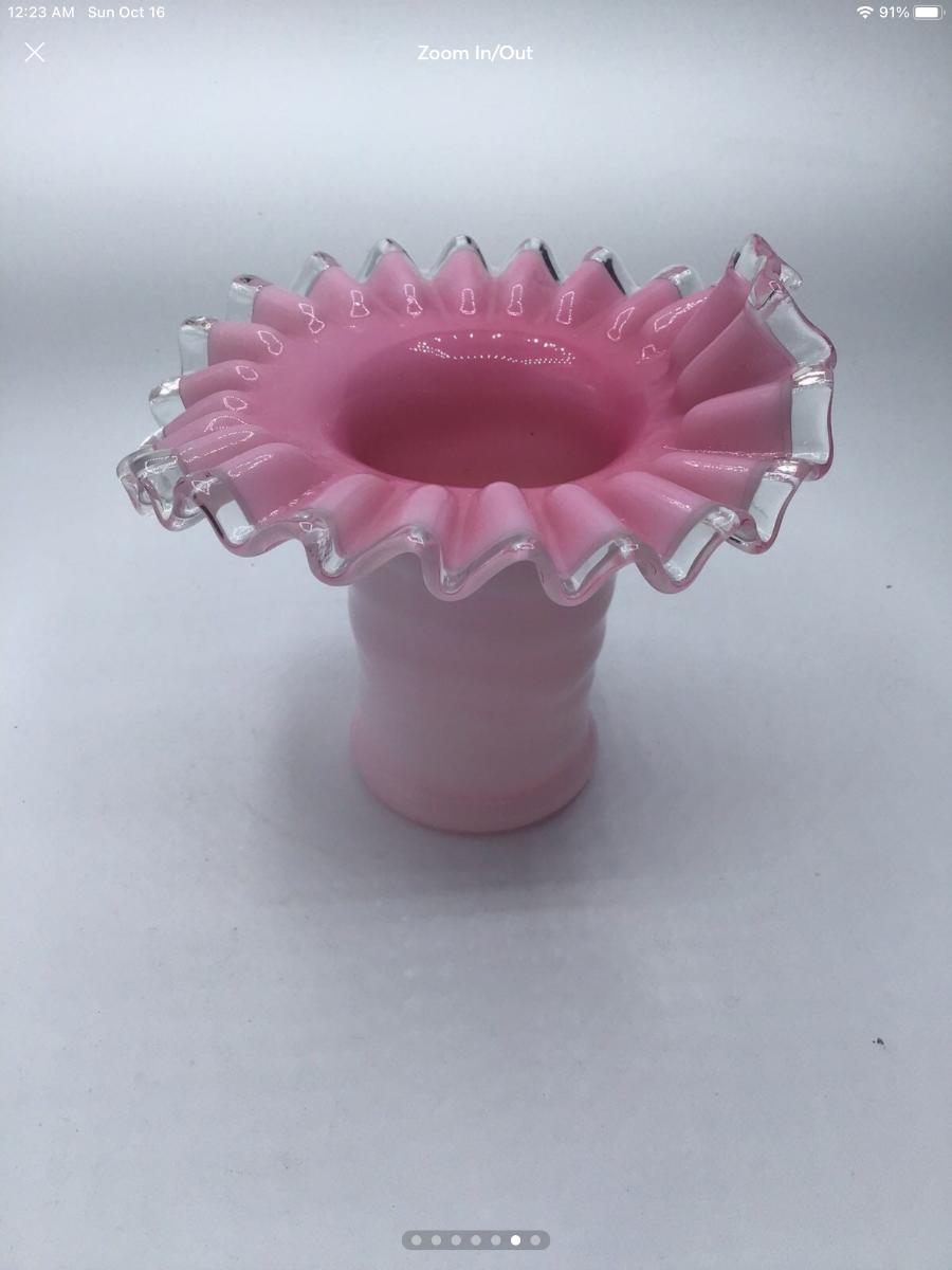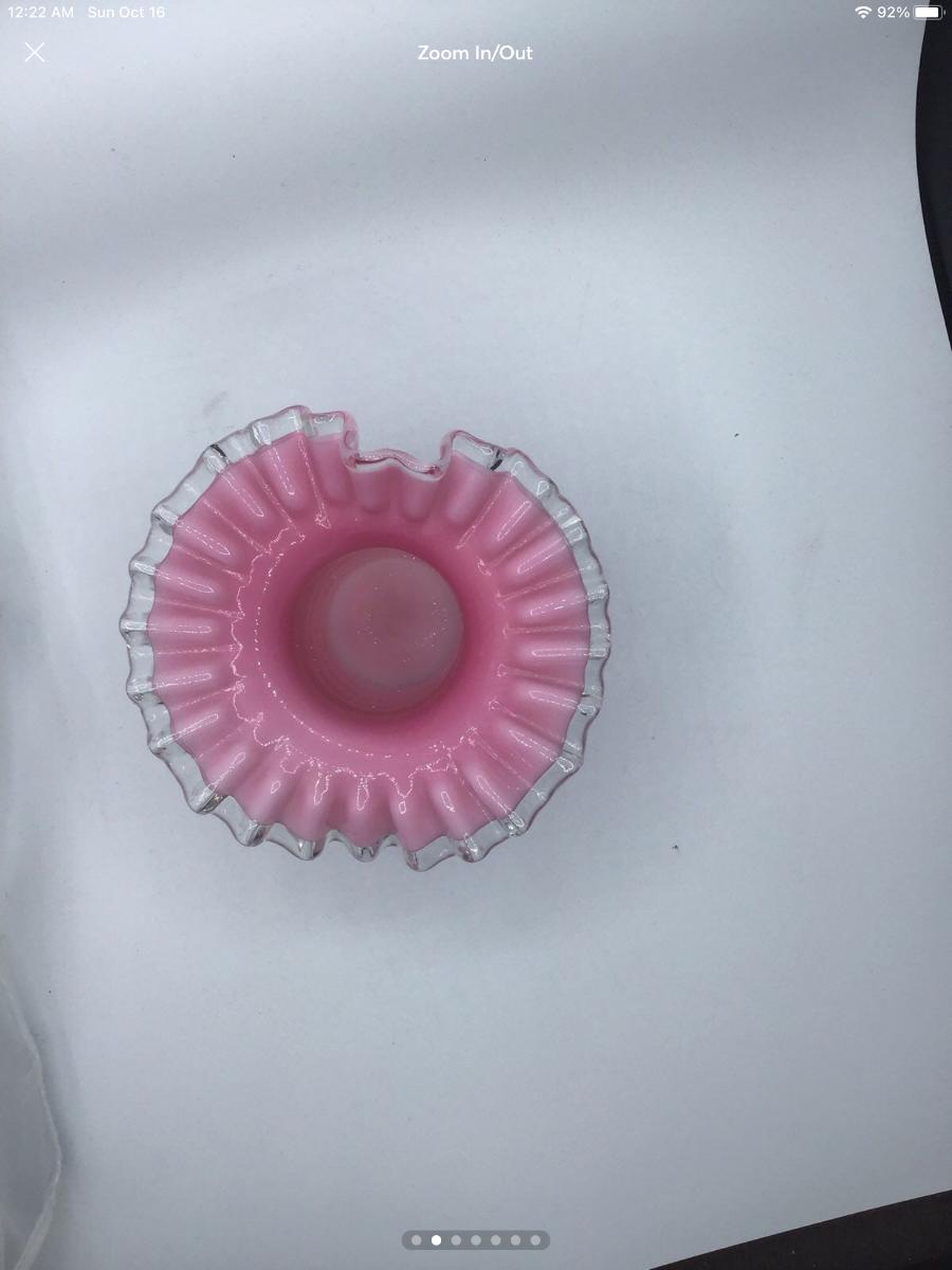 Fenton Silver Crest Pink White Clear Ruffled Edge