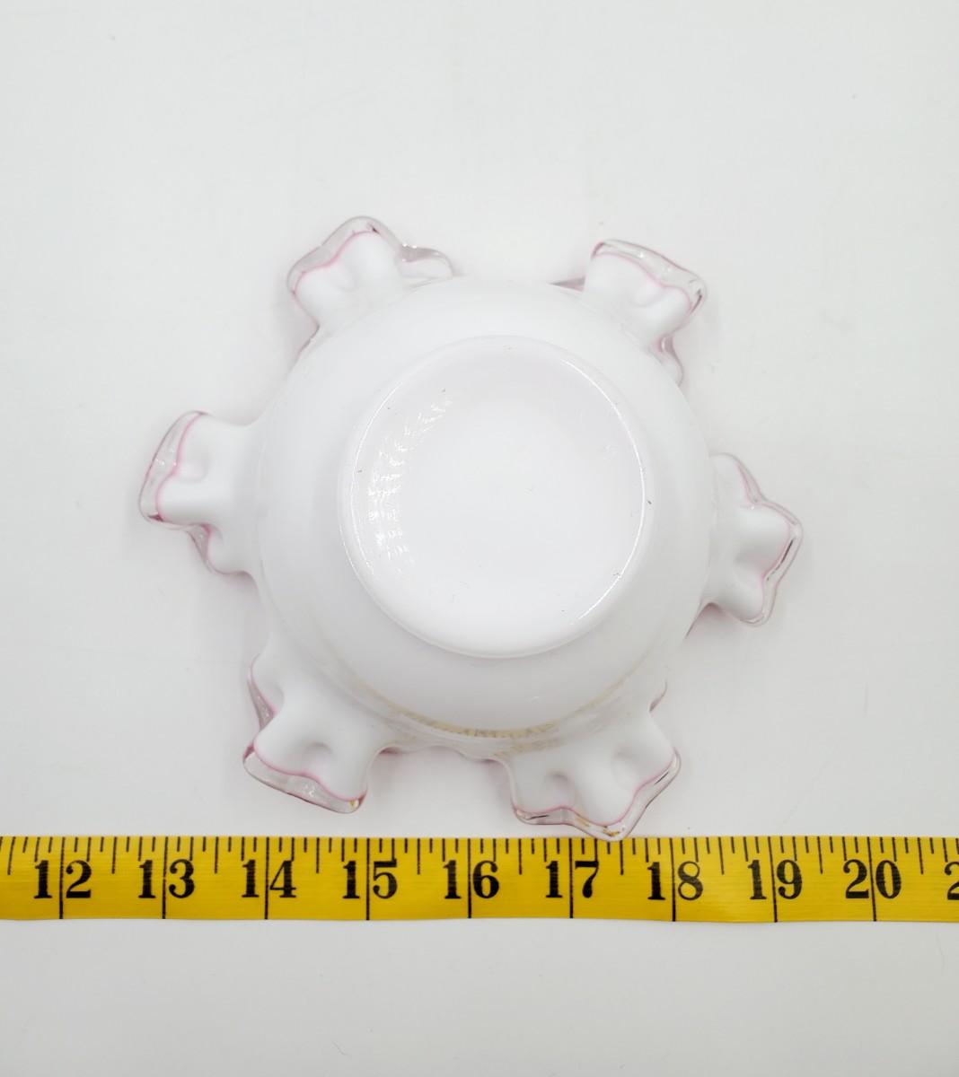 FENTON SILVER CRESTED  WHITE MILK GLASS PINK RUFFLED TOP CANDY DISH