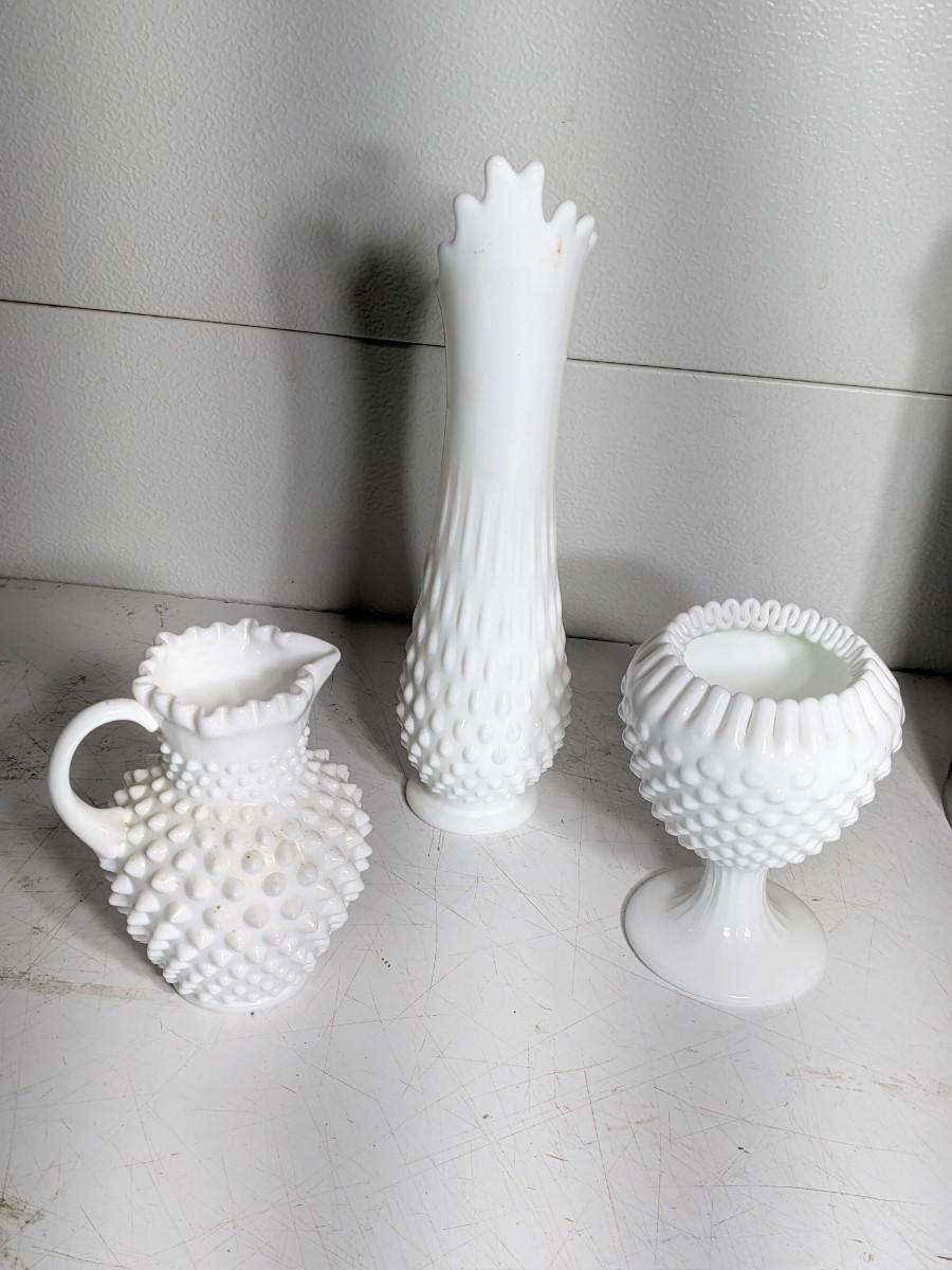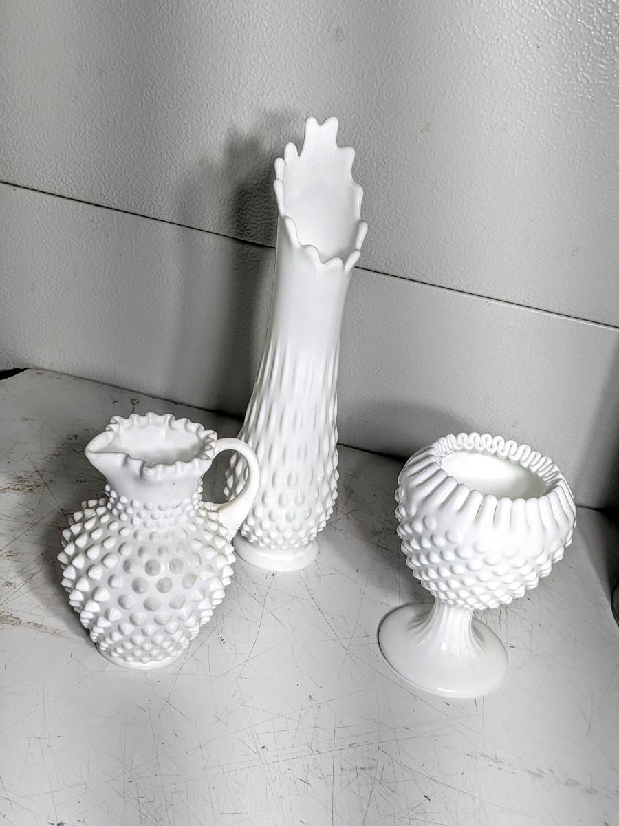 Fenton Swung Bud Vase, et al Hobnail Milk Glass
