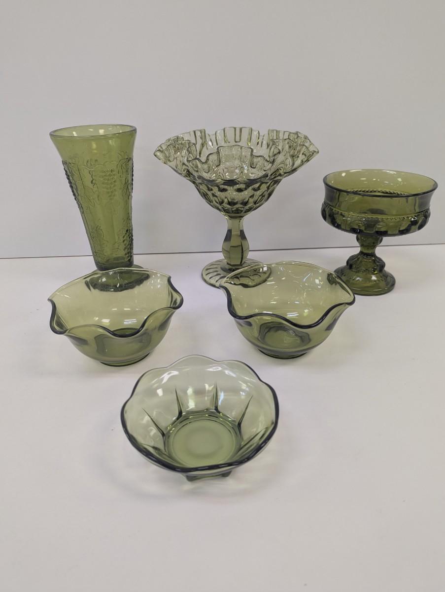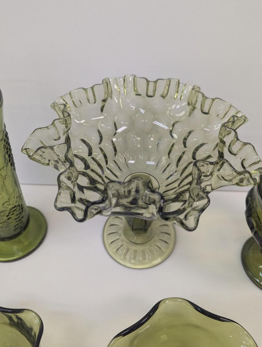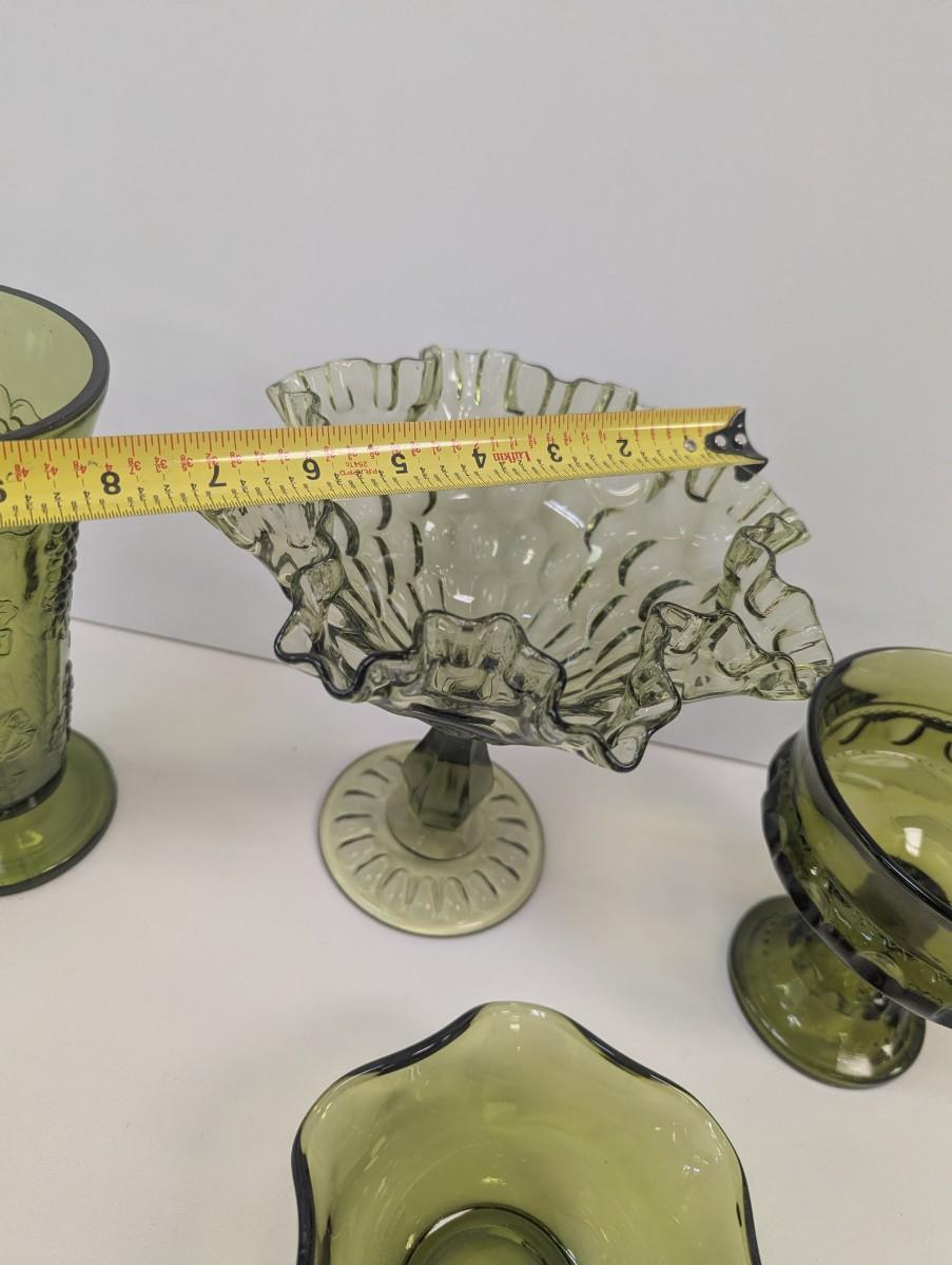 Fenton Thumbprint Compote Ruffle Pedestal Candy Dish Anchor Hocking Scalloped Dip Bowl Colony Harvest Vase #38