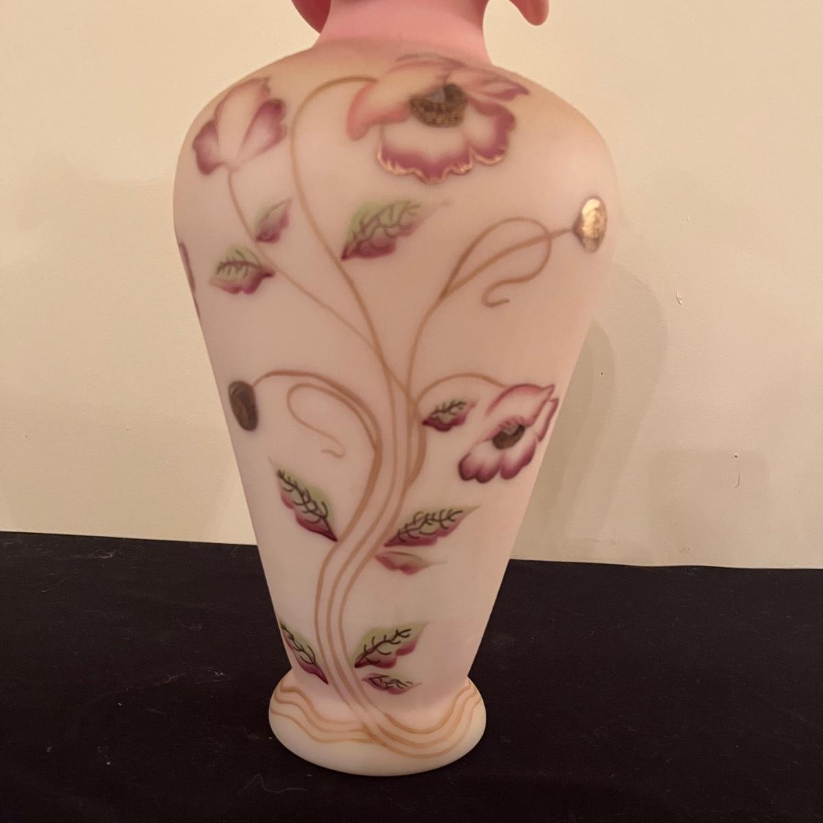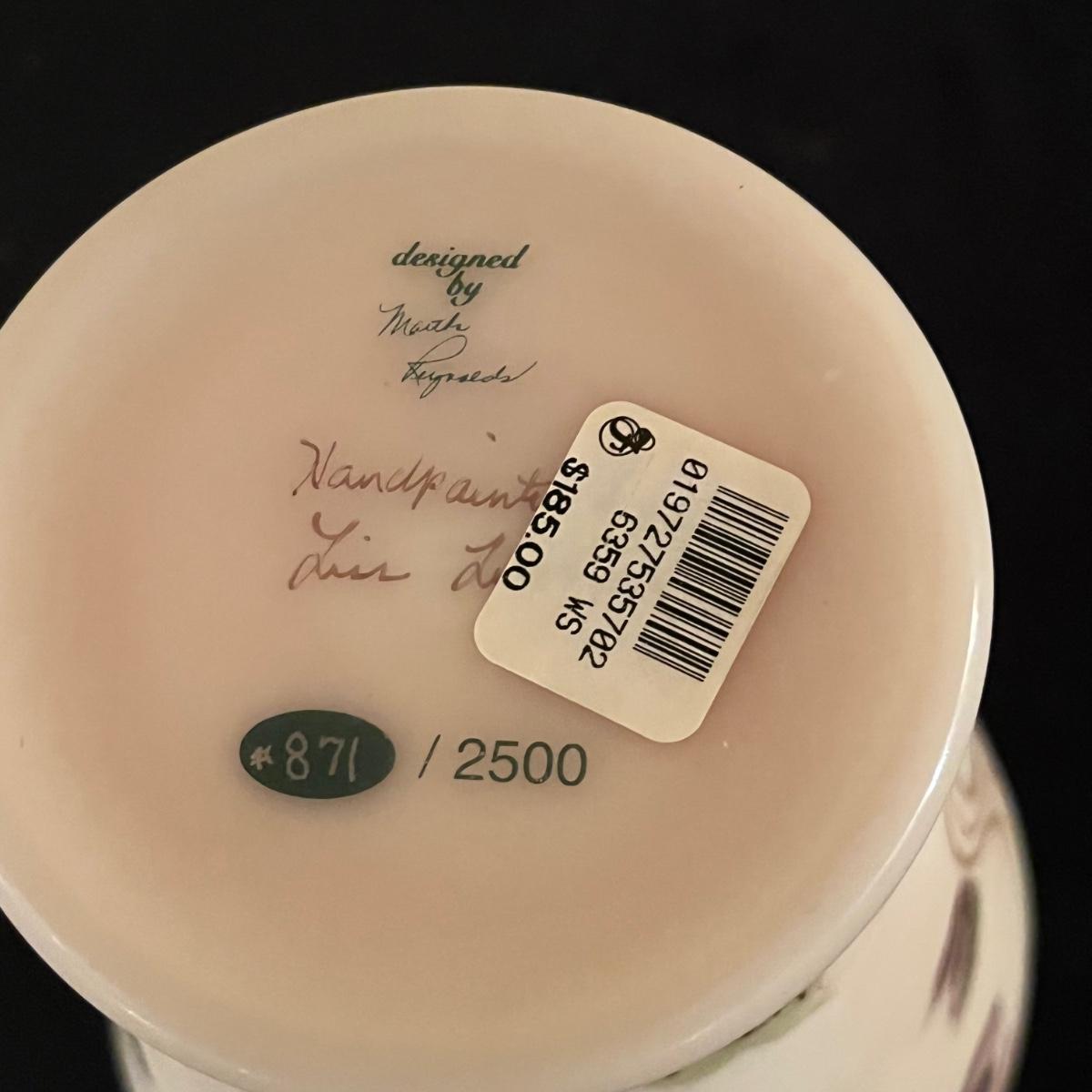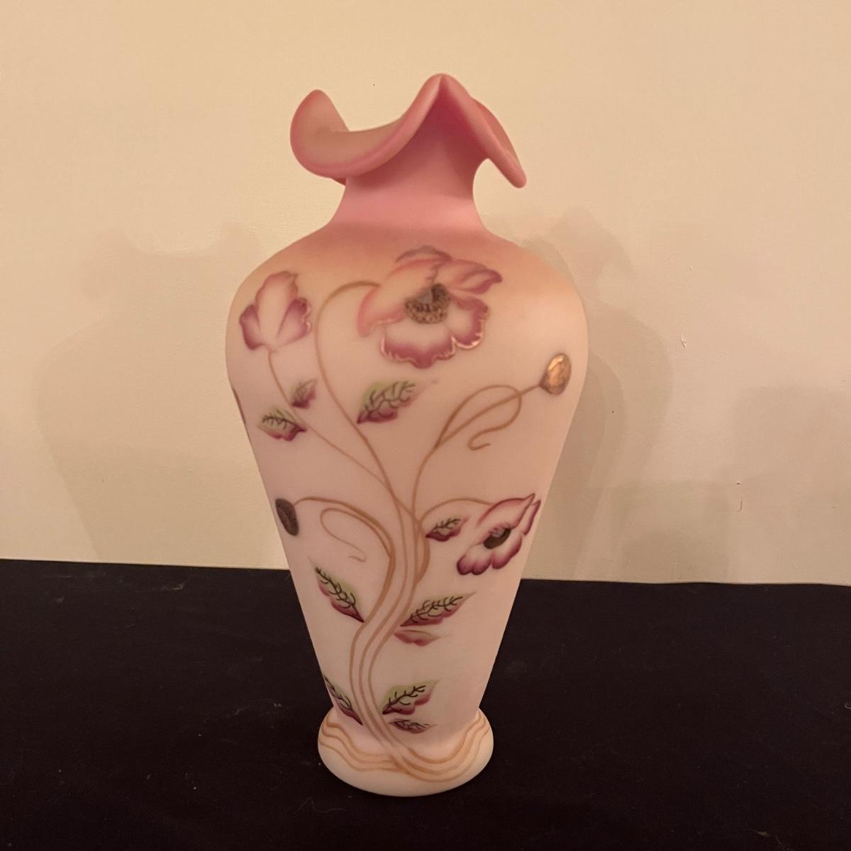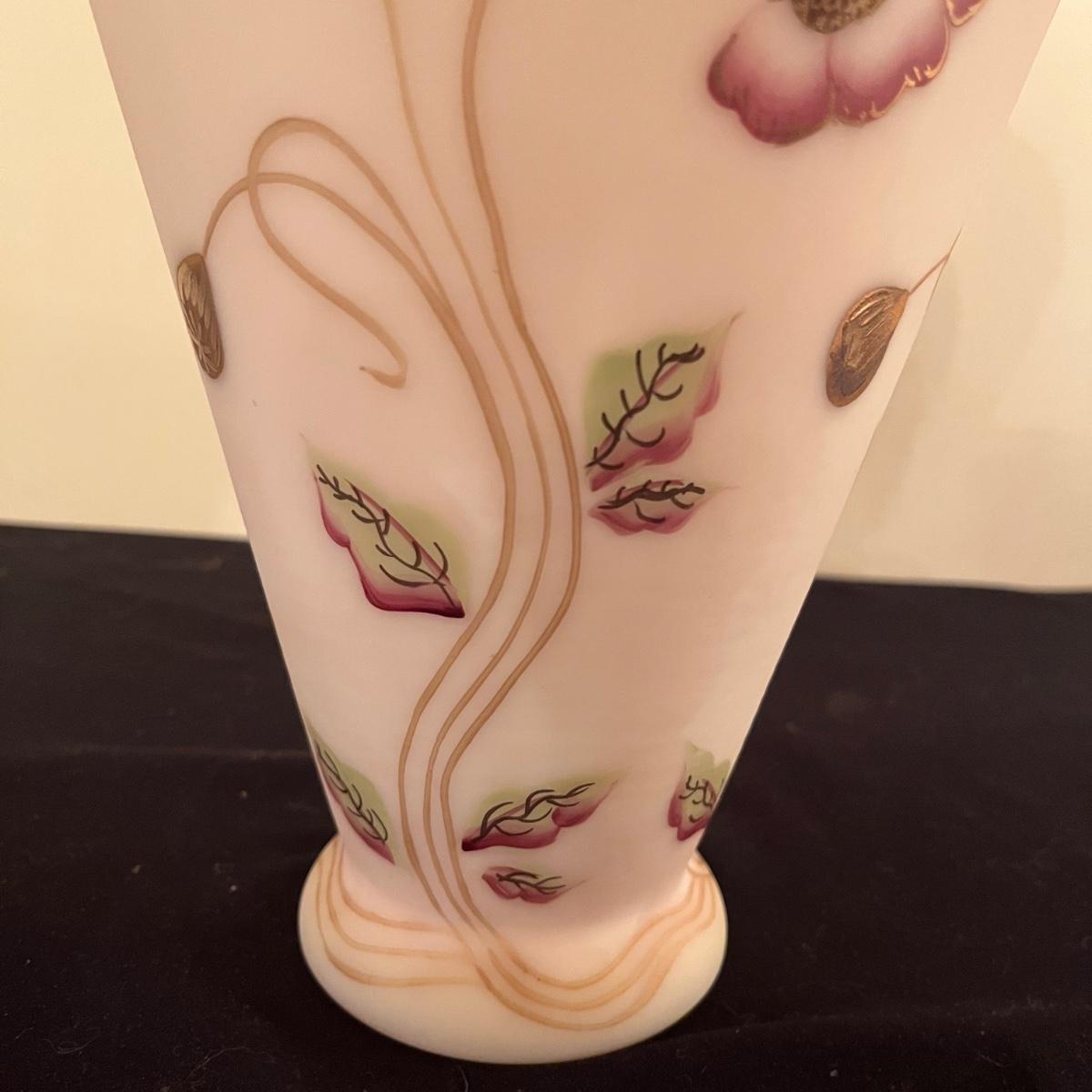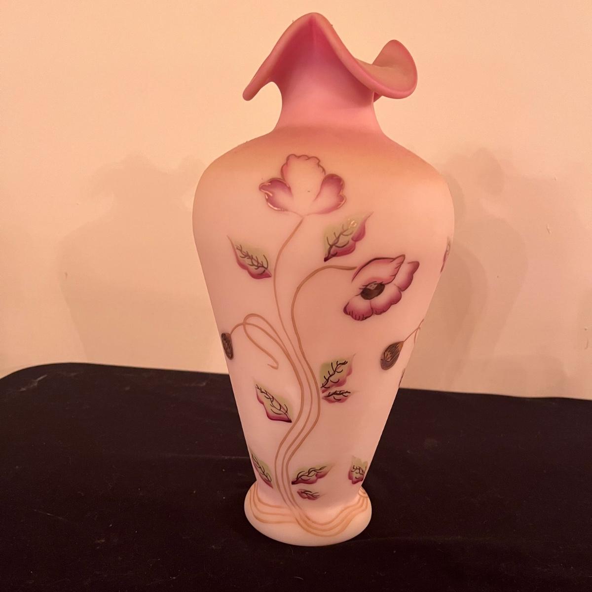 Lot includes a numbered Fenton vase designed by Martha Reynolds and hand painted. It’s in excellent condition with no chips etc. Vase measures 6”D x 13”tall.