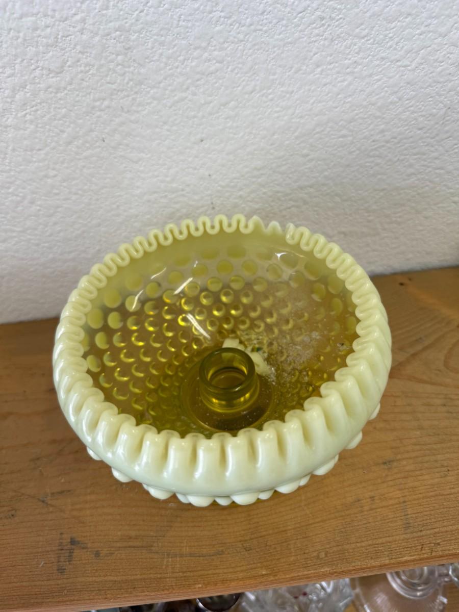 Fenton Vaseline Opalescent Hobnail Candlestick/Holder-Prelogo-Topaz Uranium MCM