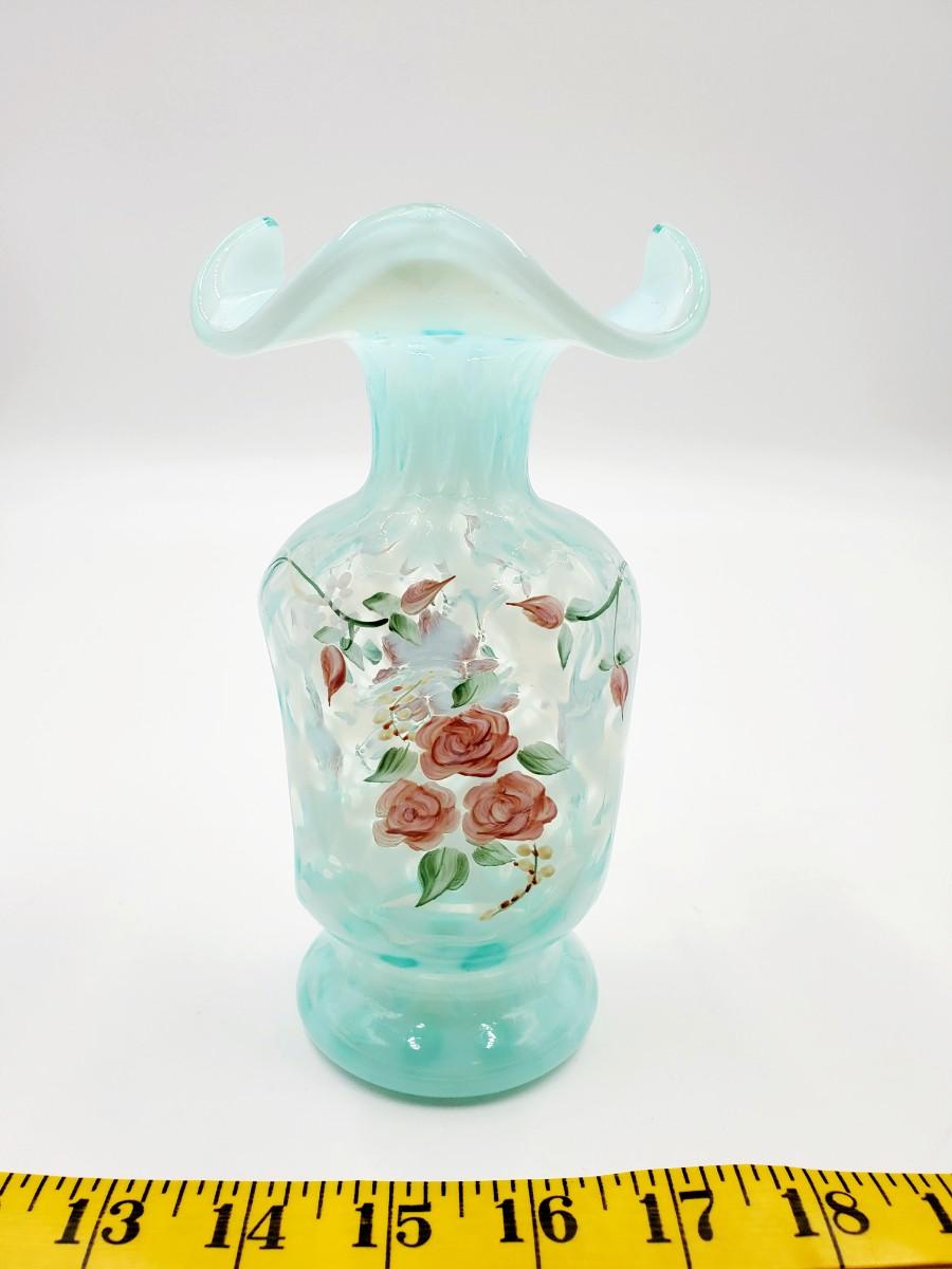 Very pretty Fenton hand painted signed pinch vase, very good condition.