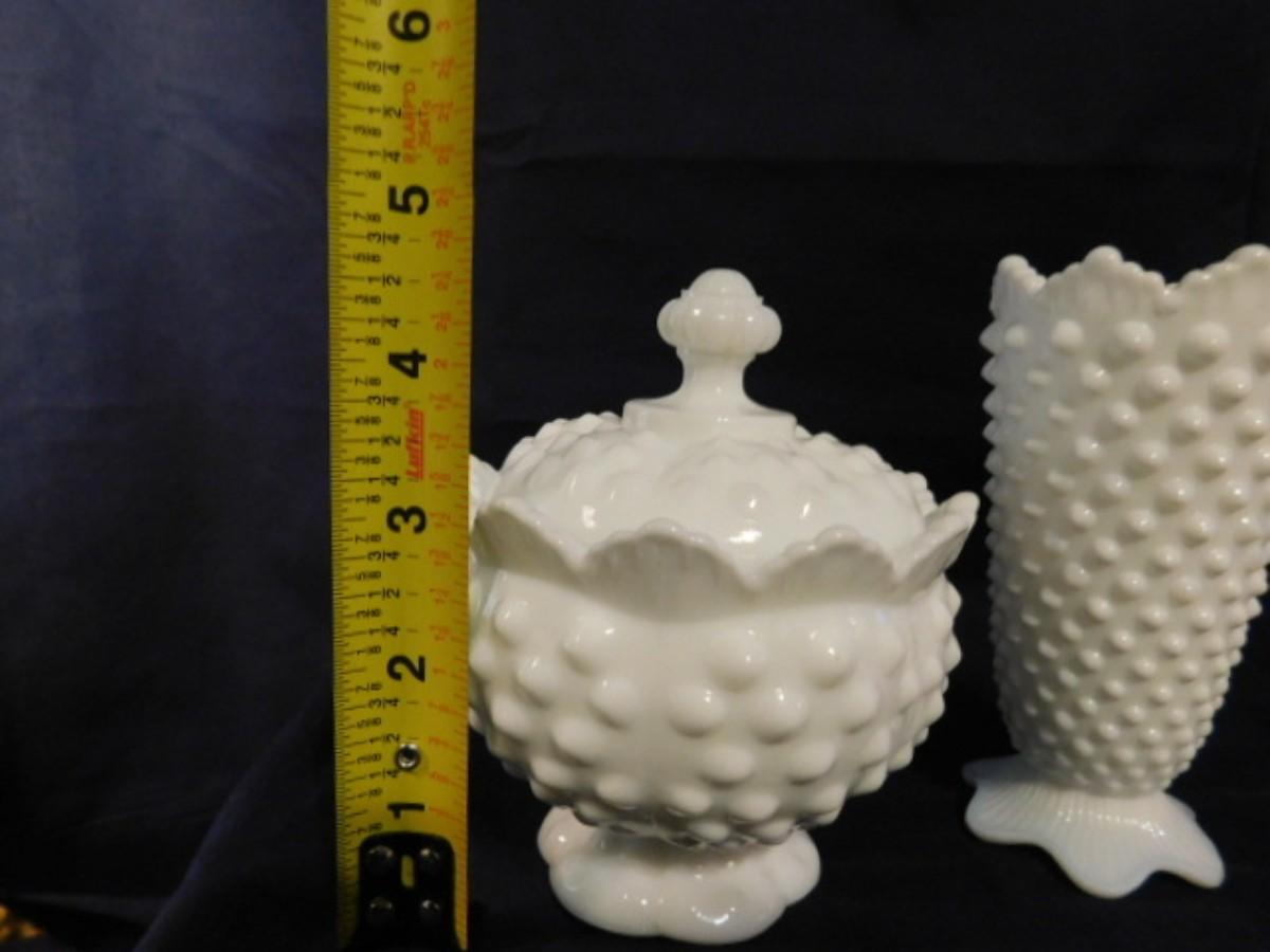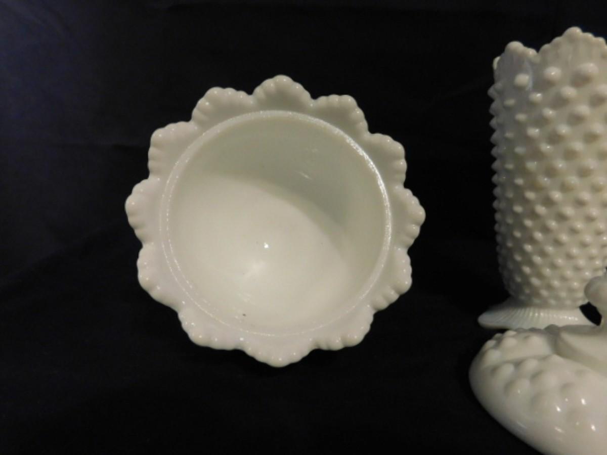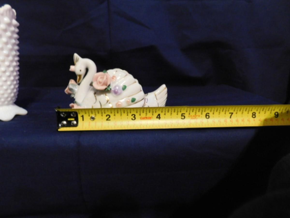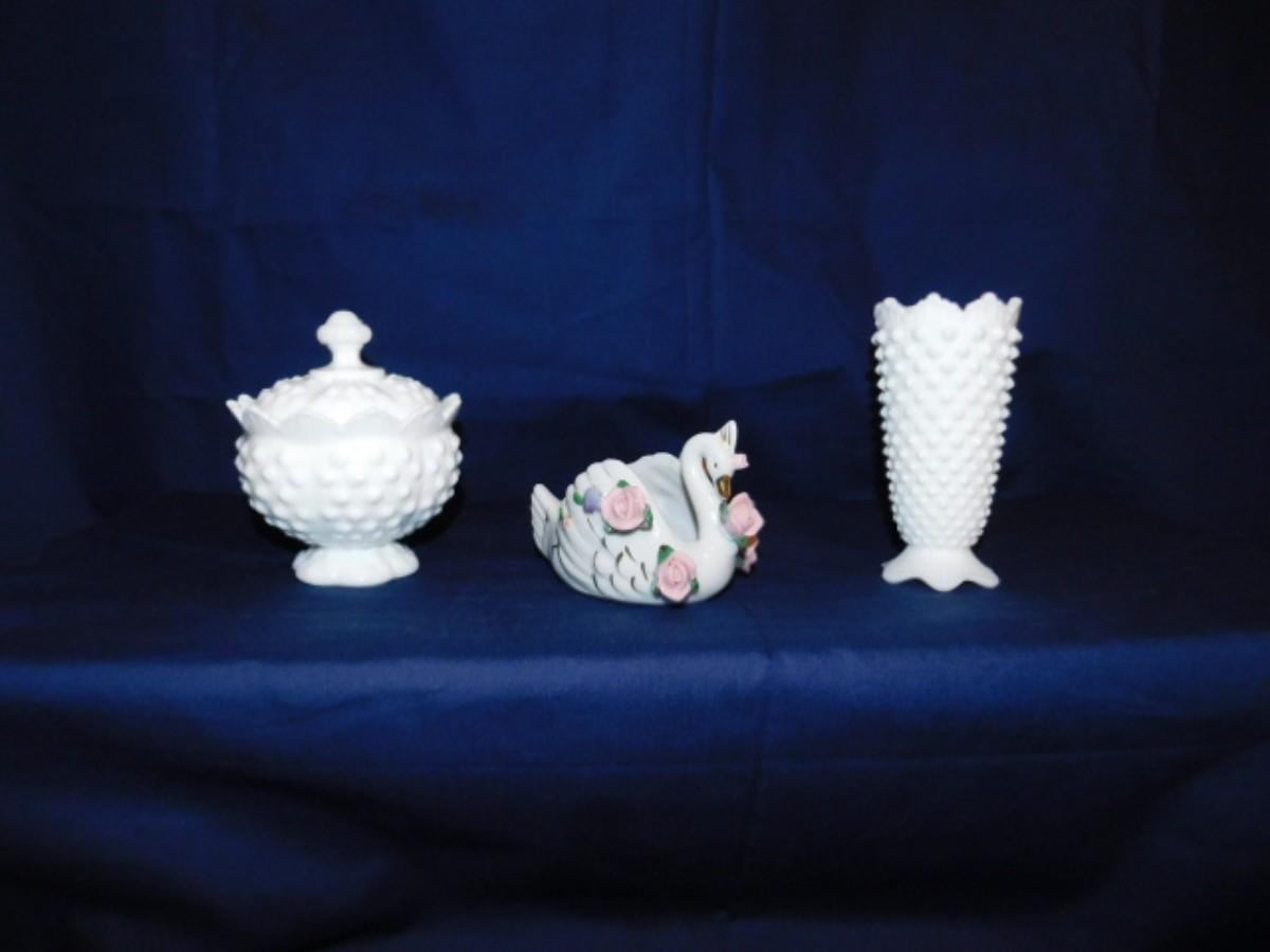 FENTON WHITE HOBNAIL MILK GLASS AND VTG PORCELAIN SWAN