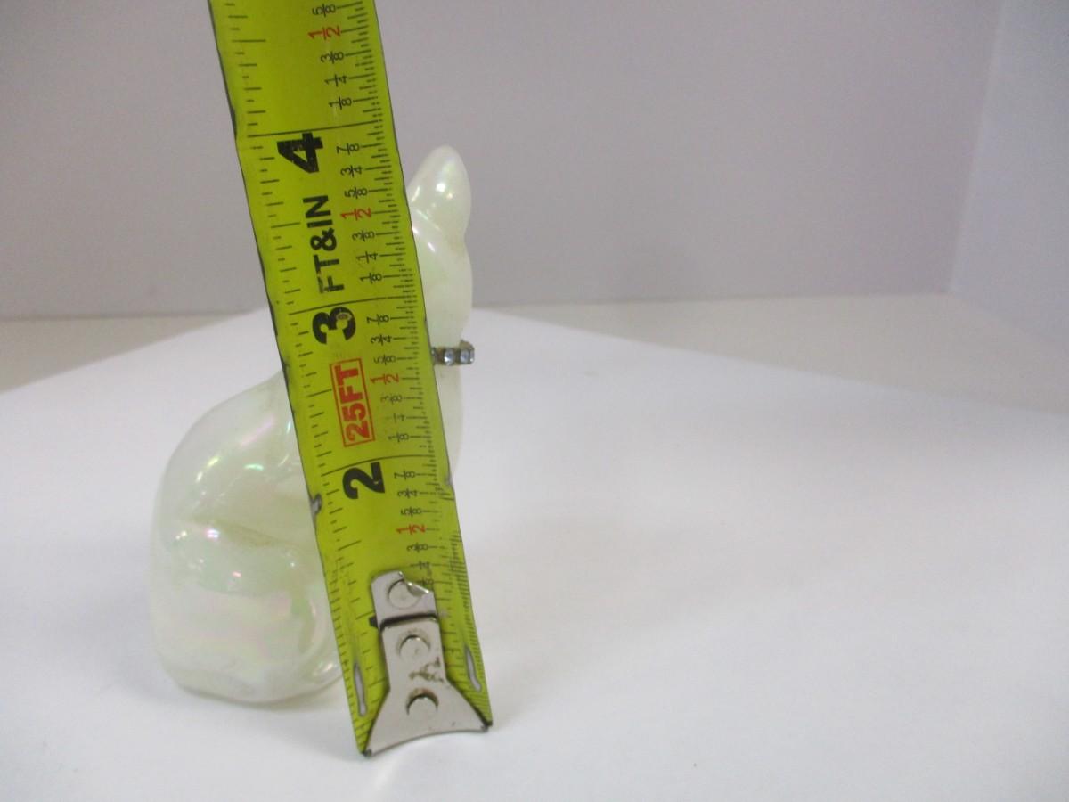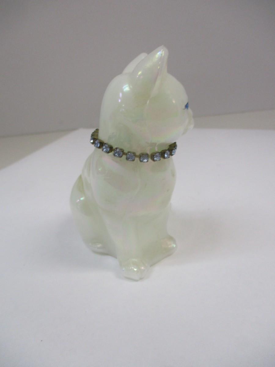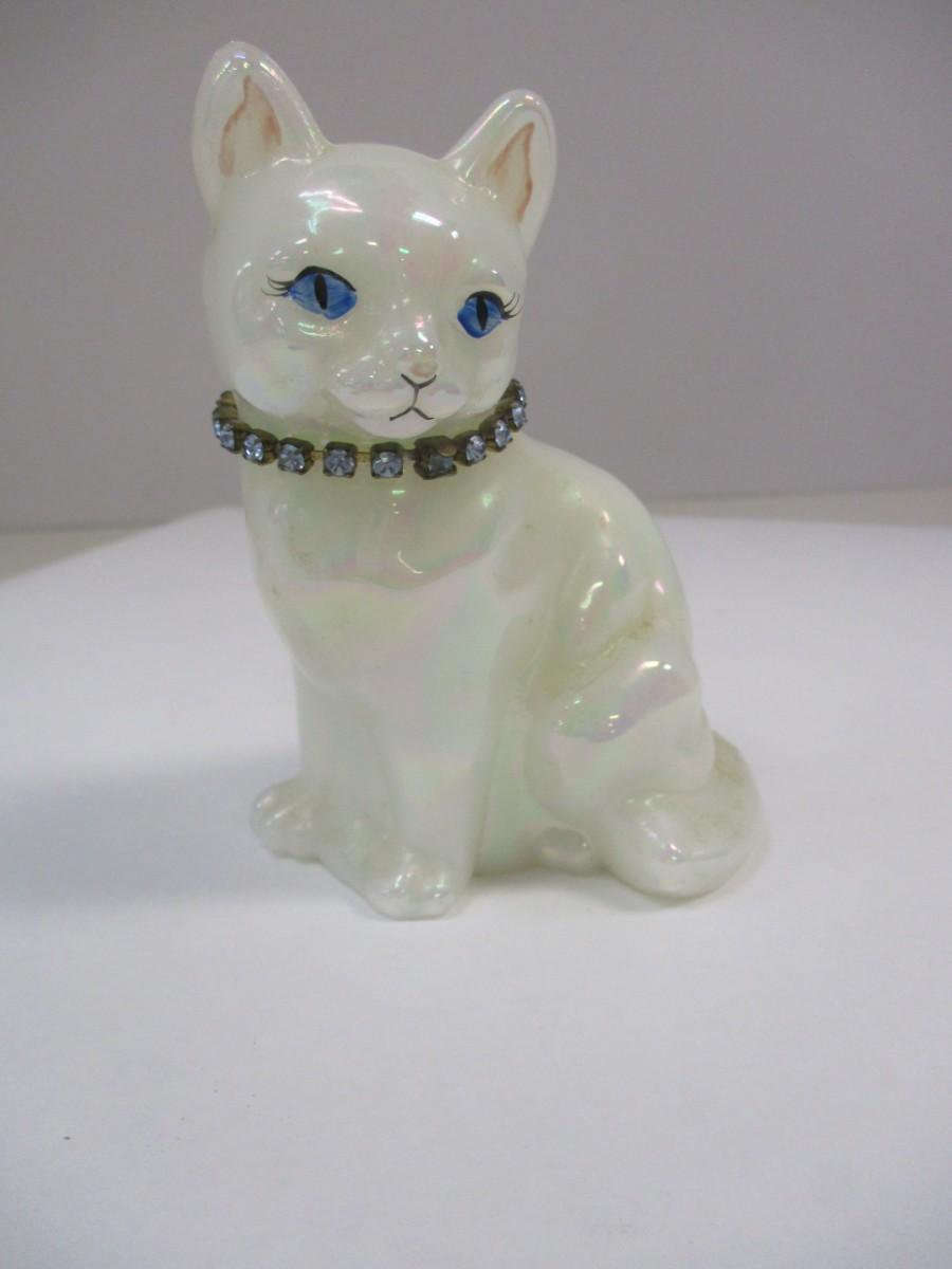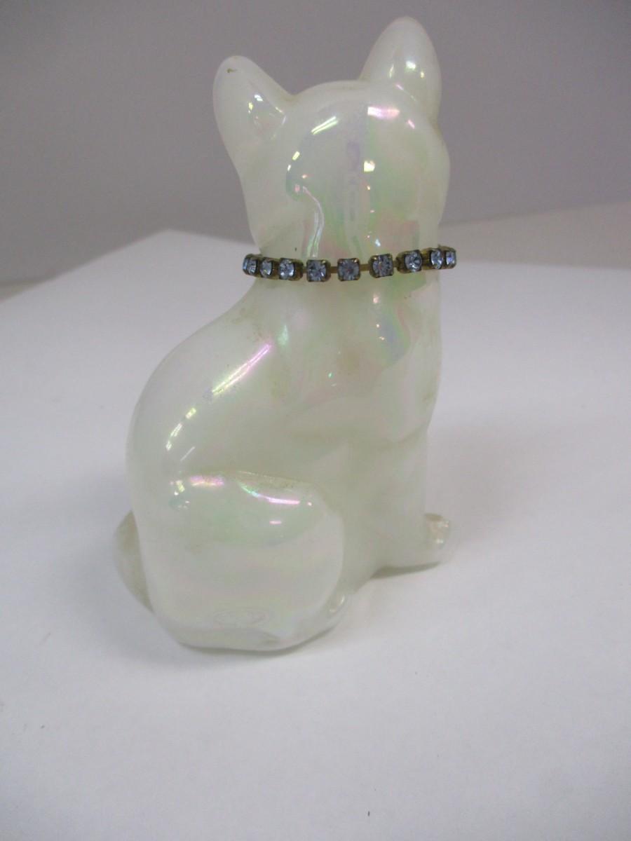 The Fenton White Satin Sitting Cat figurine is a beautifully hand-painted piece that adds a touch of elegance to any room. With its pristine white color and intricate details, this figurine captures the grace and beauty of a sitting cat in a unique and artistic way. The Fenton brand is known for its high-quality craftsmanship, making this piece a charming decorative addition for cat lovers and collectors alike.
