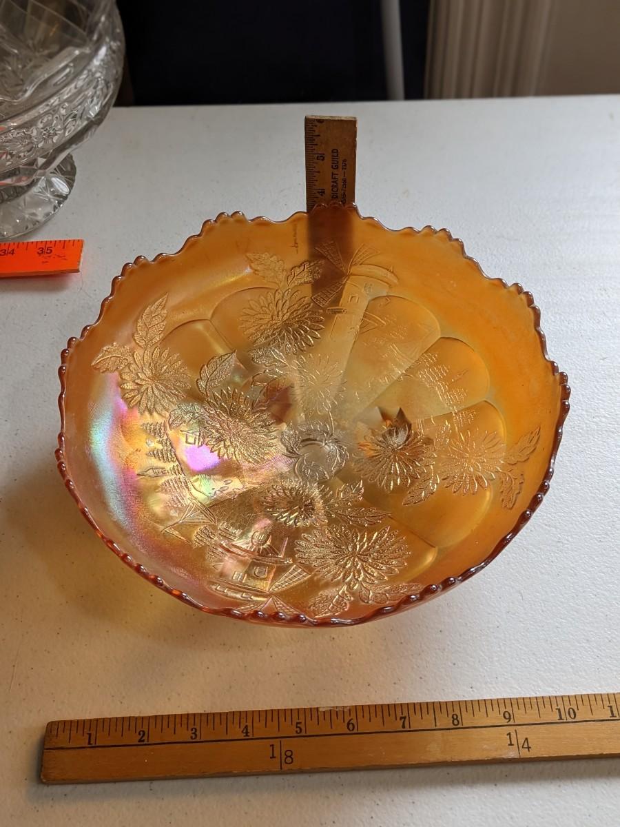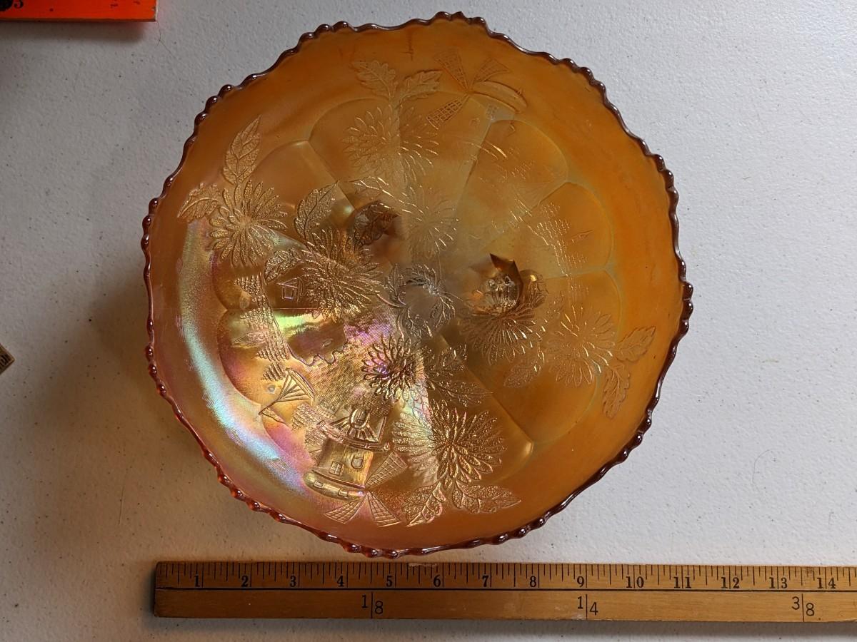 Fenton (?) WIndmill Marigold Carnival Bowl