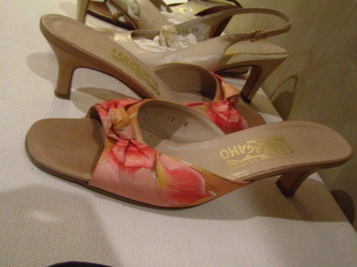 Ferragamo Shoes (Set 2). 5 pairs. Most size 10. In used condition.