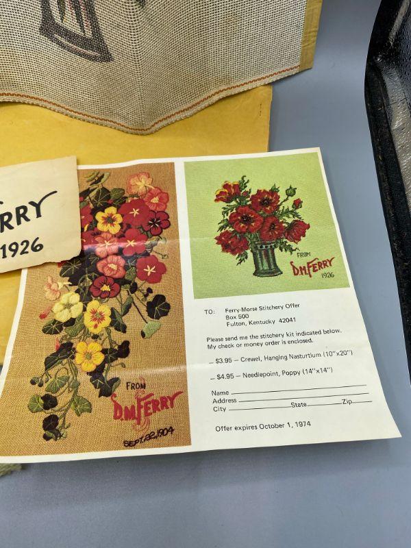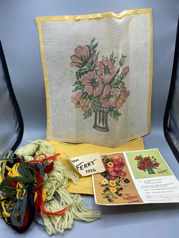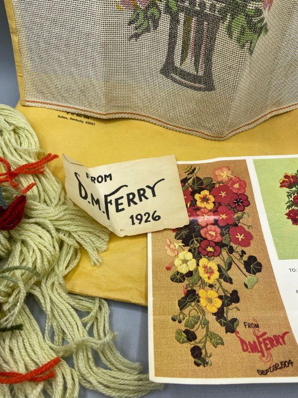 Ferry Morse Seed Company "Poppy" needlepoint kit. Early 1970s. Kit looks to be complete, except for instructions. Measures 14"x14"