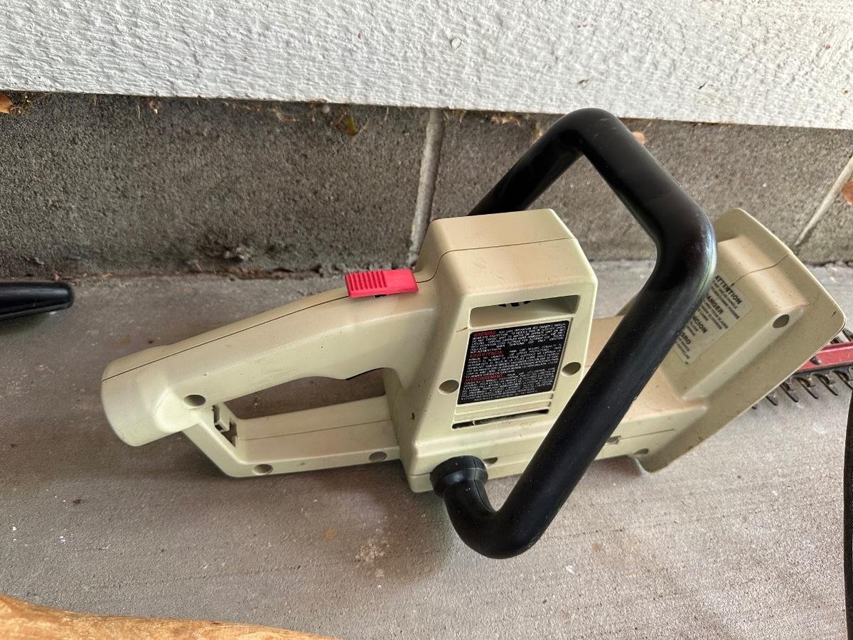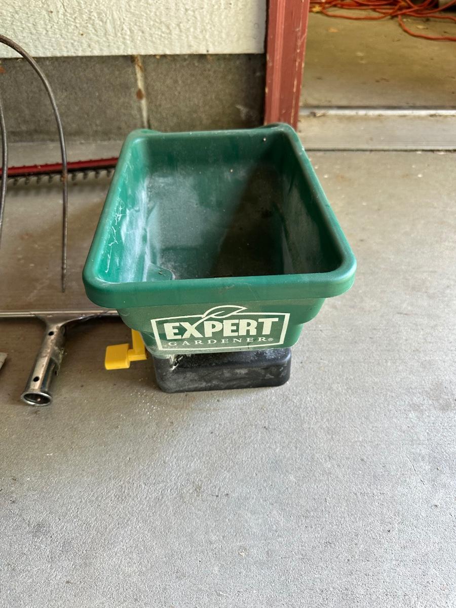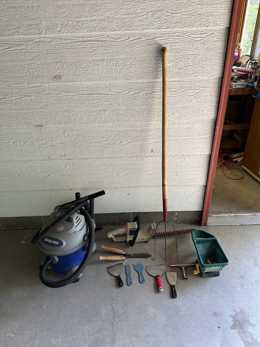 FERTILIZER SPREADER, SHOP VAC, HEDGE TRIMMER AND MISC