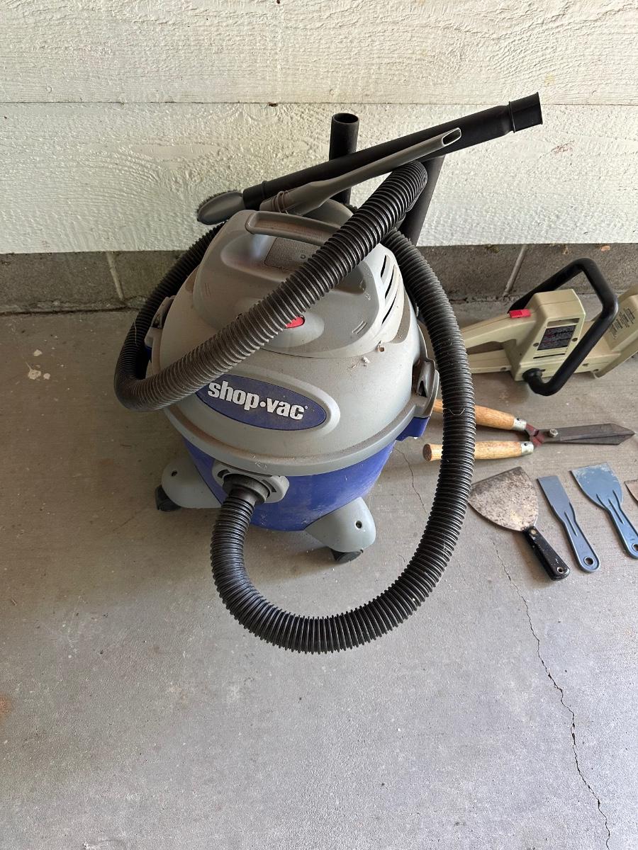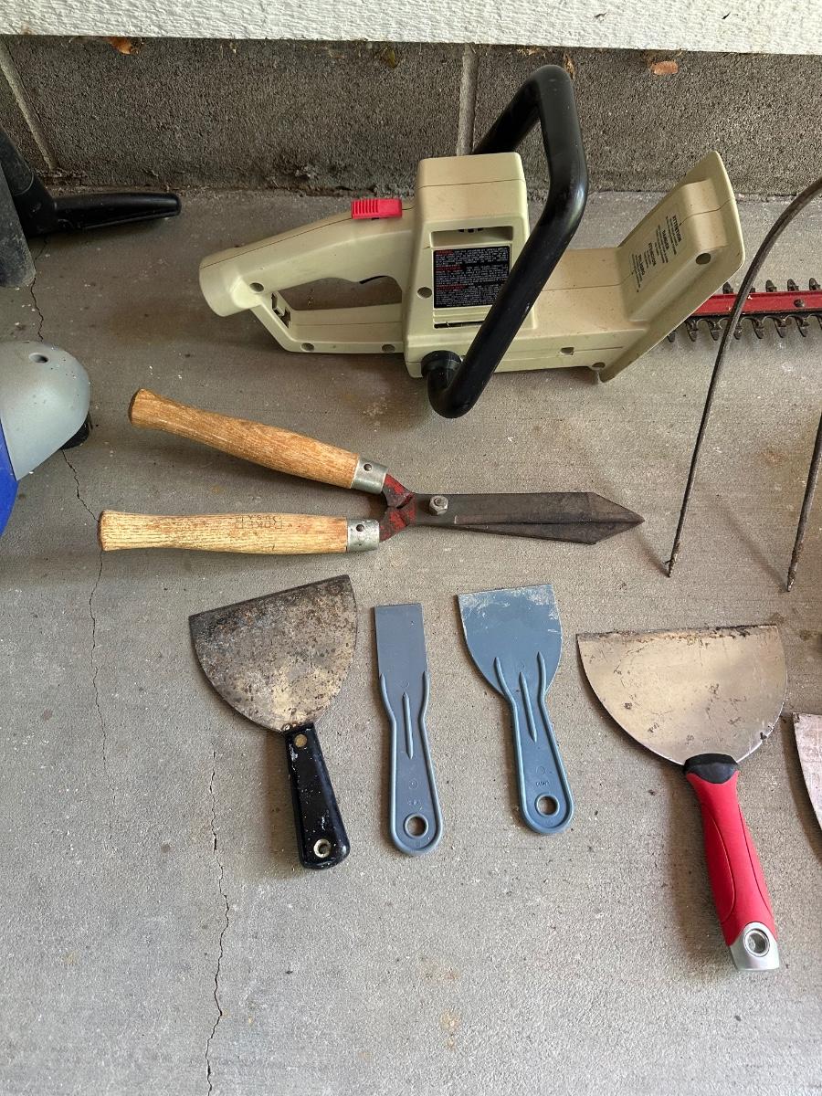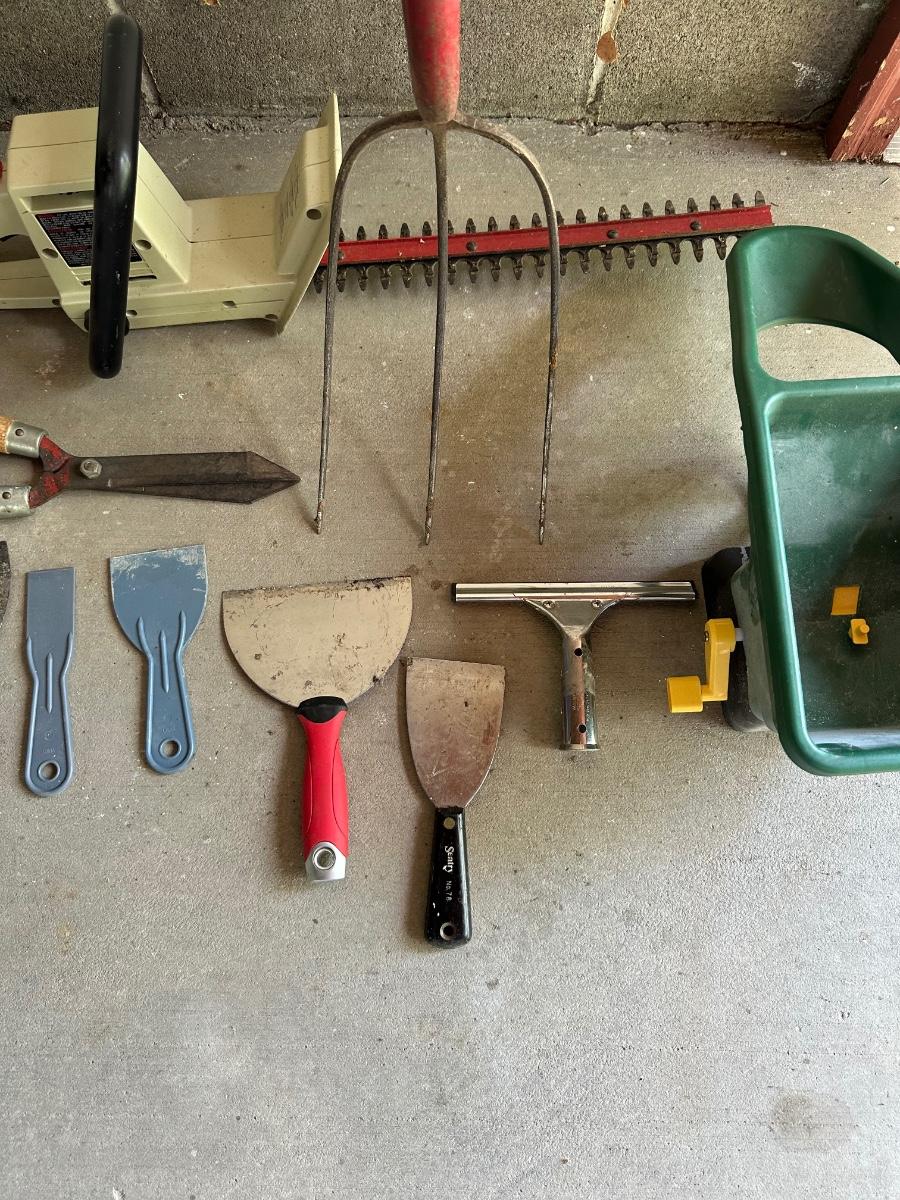 FERTILIZER SPREADER, SHOP VAC, HEDGE TRIMMER AND MISC