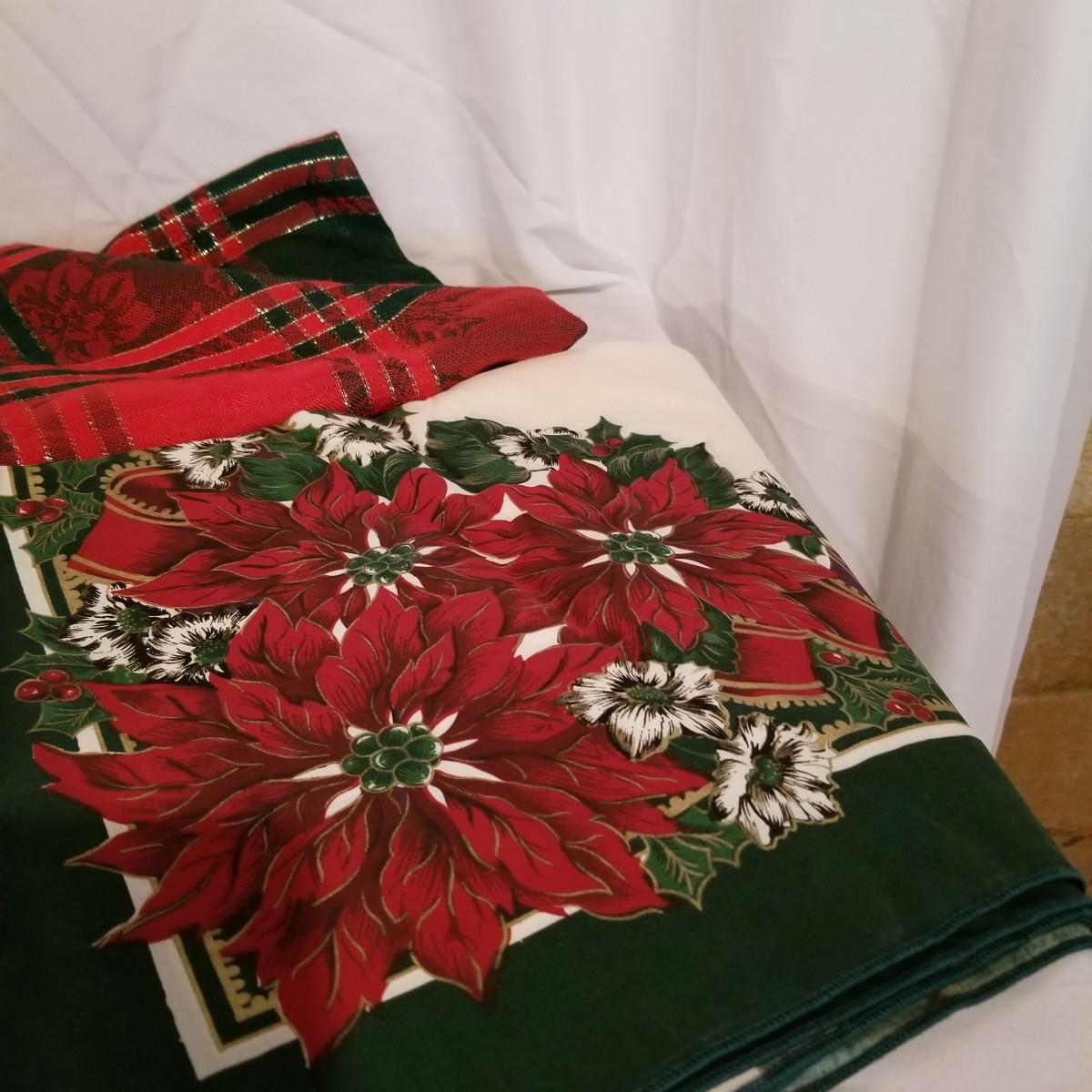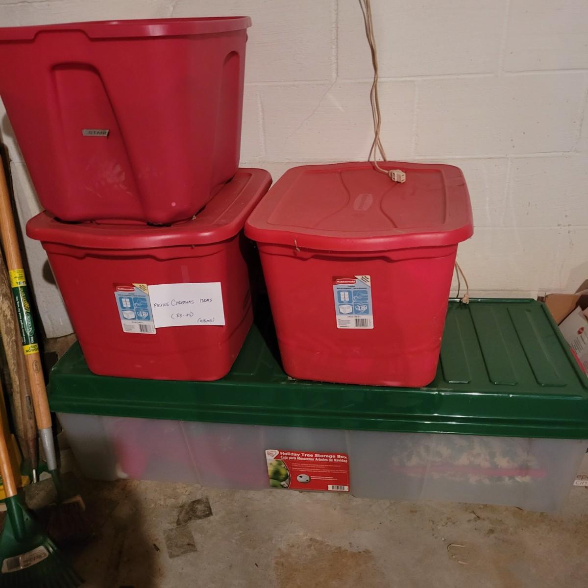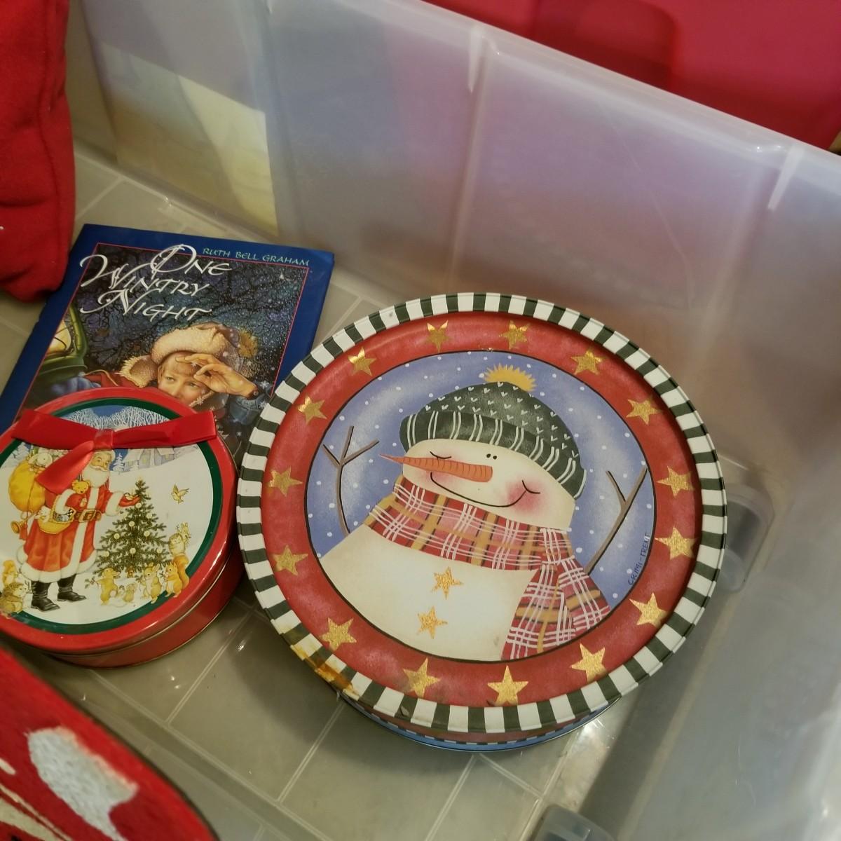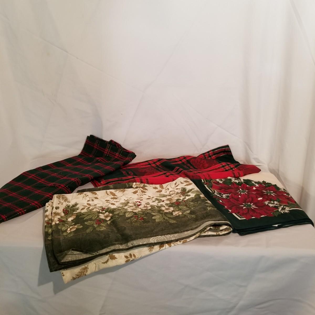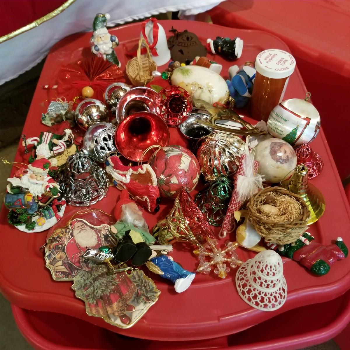 A wonderful holiday collection of decorations, ornaments and more. Over fifty hanging ornaments, several trees, sleighs, pillows, candles, a tree skirt, stuffed plush Santa and more. One lighted church with multi color change led lights. An outdoor welcome mat. Also includes four tablecloths in sizes from 56"x72" to 60"x84". Everything packed in four Christmas storage bins, included. See photos for details. Local pickup only.