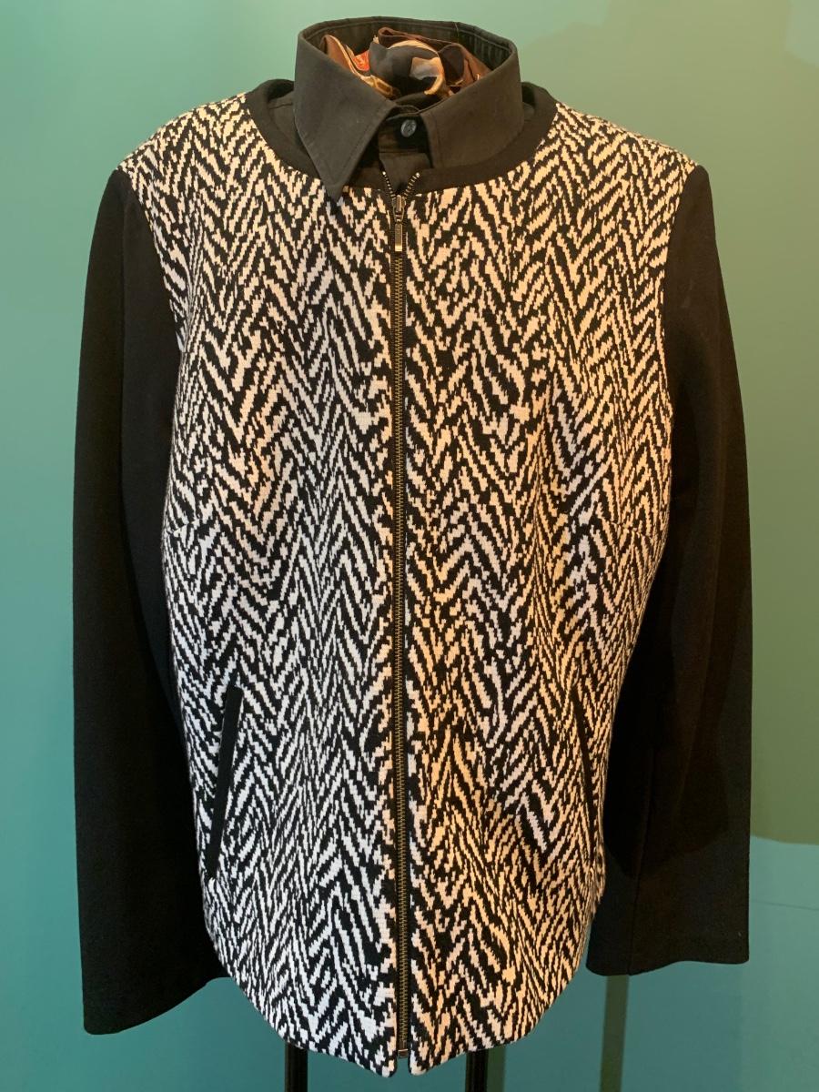 Festive Edge: Talbots Black & White Zip Motorcycle Jacket - Size 14