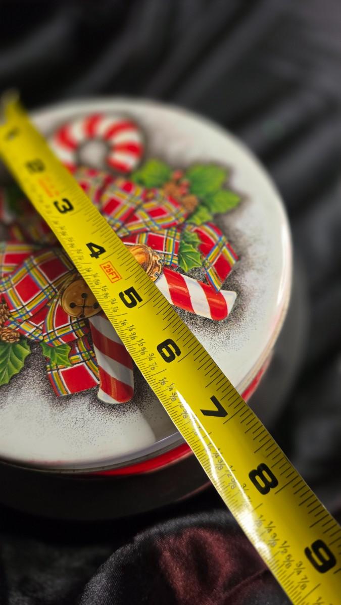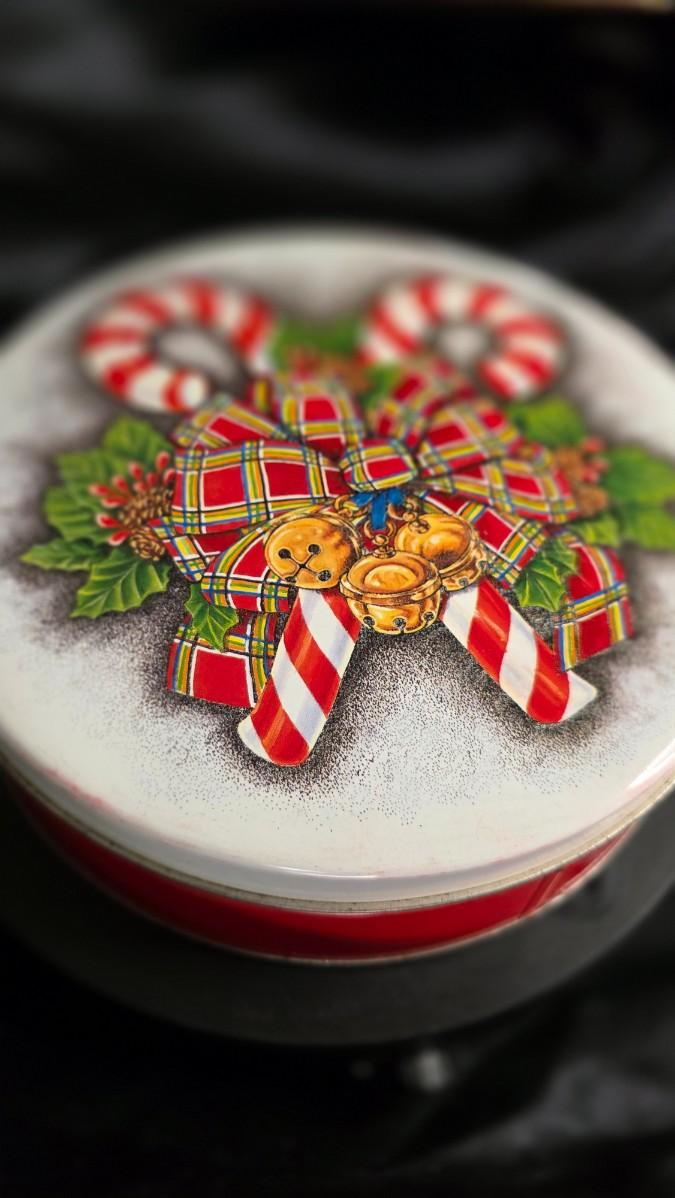 Festive Holiday Tin – Candy Cane & Tartan Bow Christmas Storage Container