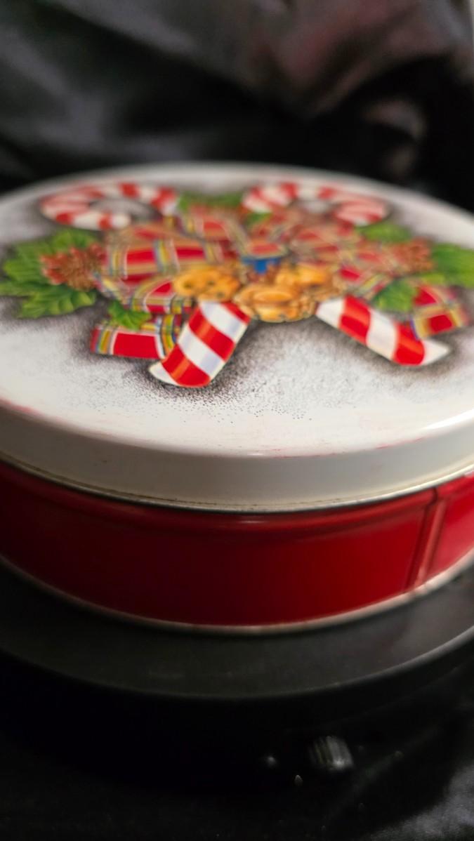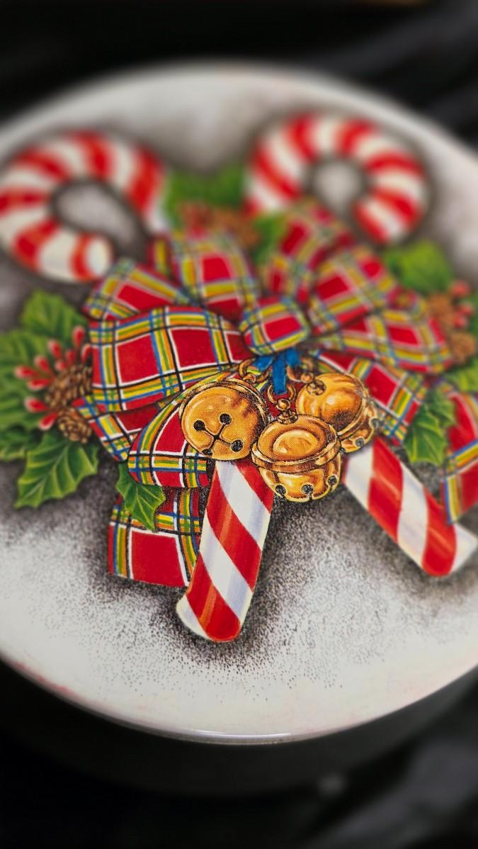 A charming seasonal tin that captures the heart of classic Christmas décor, this festive round container features a beautifully illustrated tartan bow adorned with golden jingle bells, bright red-and-white candy canes, and lush holly accents. The vibrant colors and nostalgic artwork make it perfect for gifting, holiday displays, or storing seasonal treats and small treasures. Its vintage-style design brings a warm, traditional holiday feel to any space, offering both decorative appeal and functional storage throughout the Christmas season.