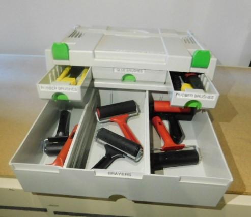 Festool Storage Cabinet Containing Rubber Brushes, Glue Brushes, Brayers Like New