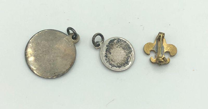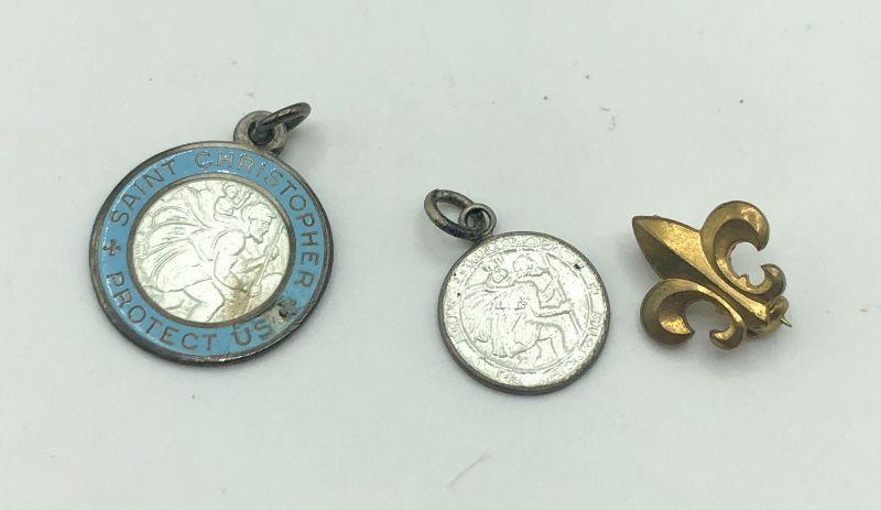 St. Christopher medals and Fleur-de-lis pin
