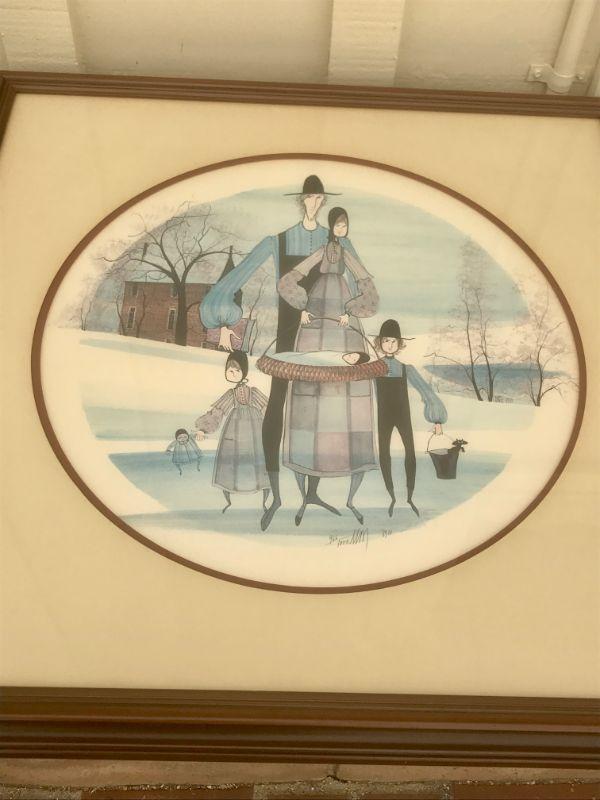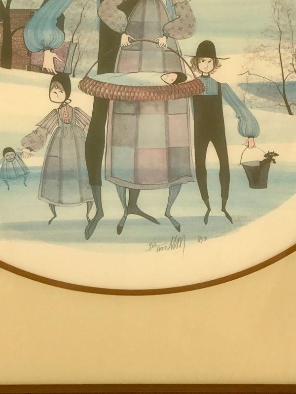 #16 Auction item: large round Artwork by P Buckley Moss, an American artist known for painting and etching. She was born in New York City, raised on Statton Island, and became an artist in Waynesboro, Virginia. Watch video on 50 years of her art.