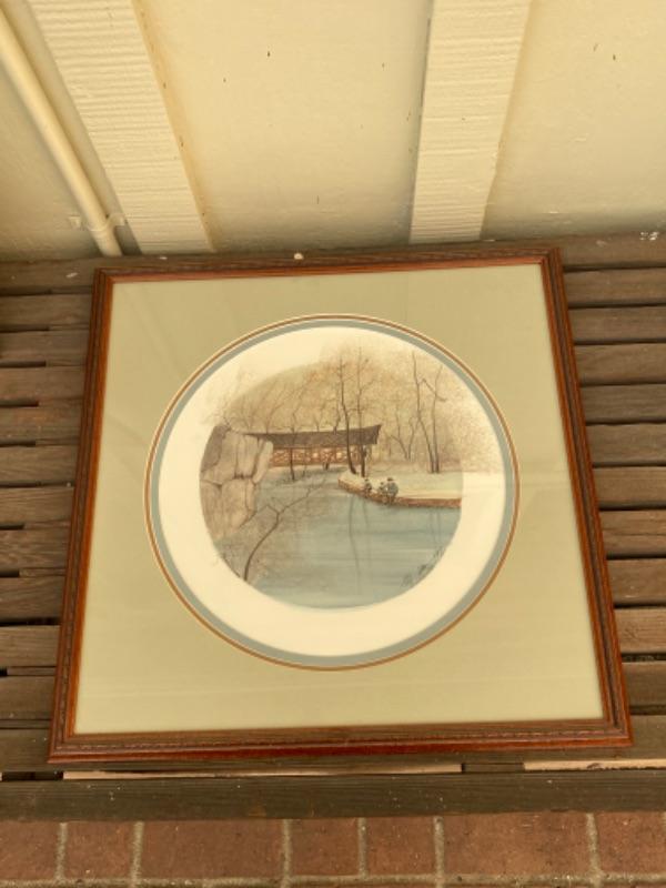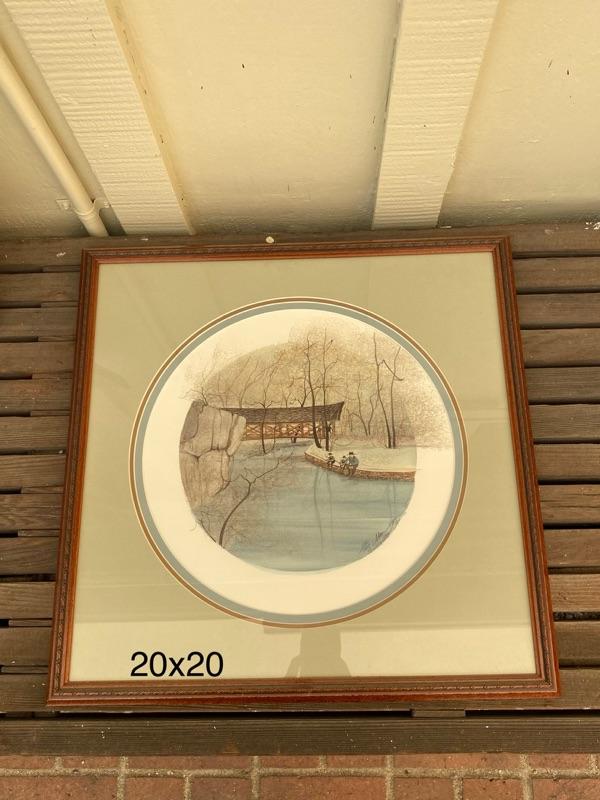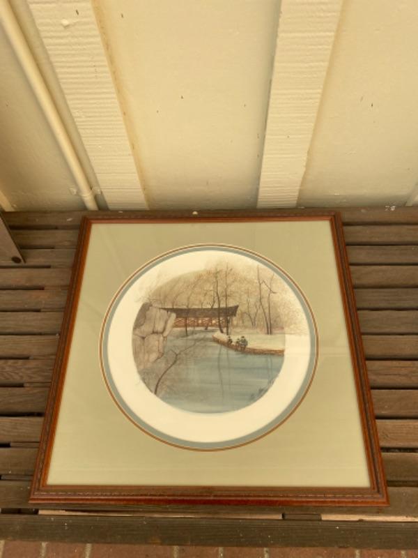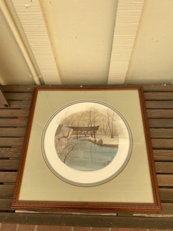 1988 Artwork Limited Edition #566/1000 RIVERWORKS P Buckley Moss print, framed, covered bridge 20" x 20"