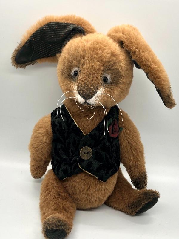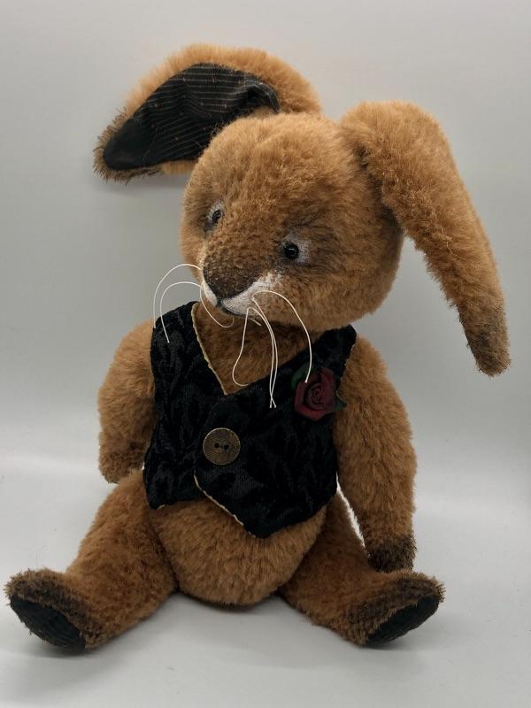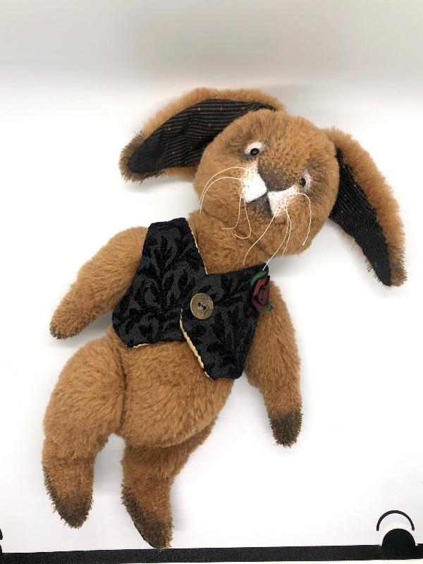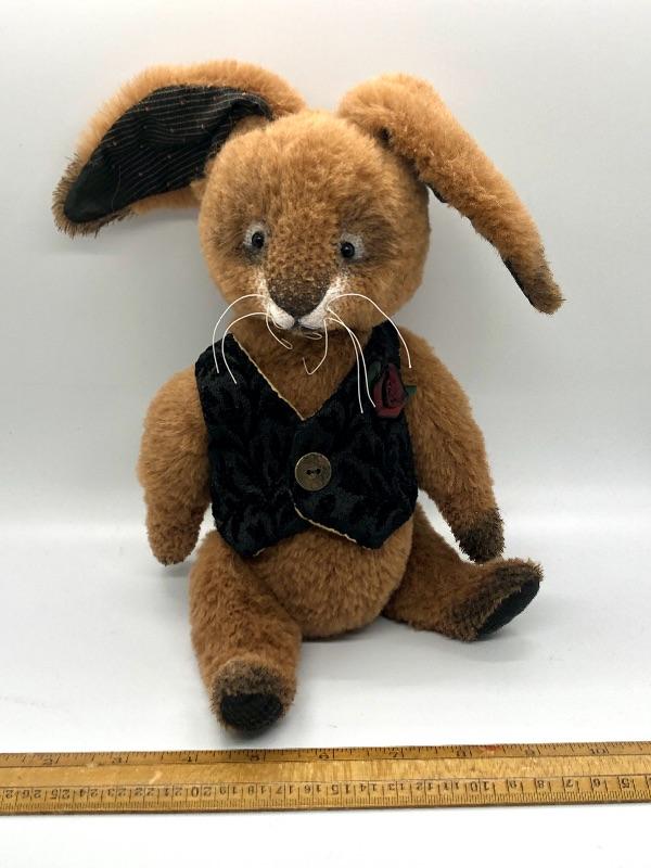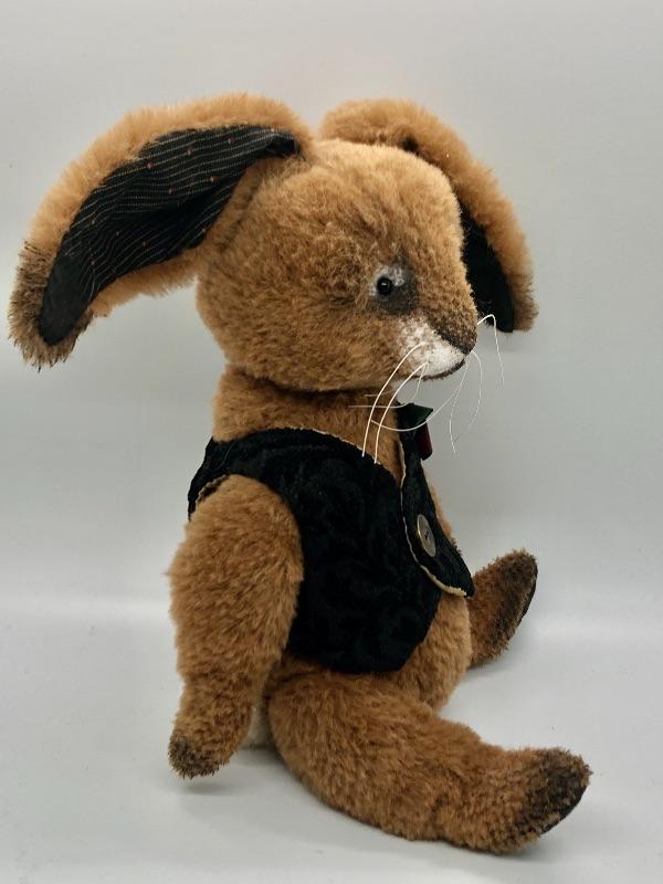 Plush bunny rabbit with black vest  - black paws and white whiskers