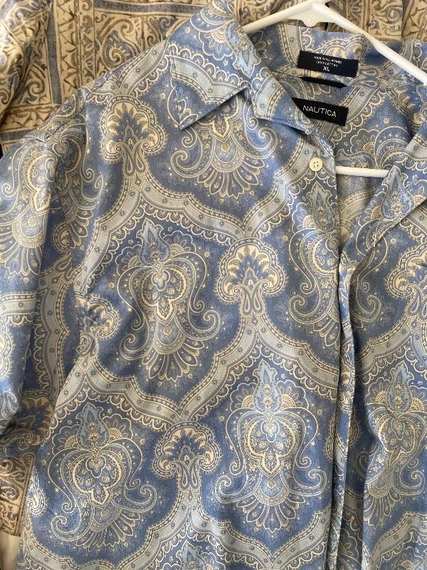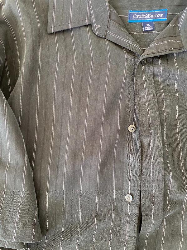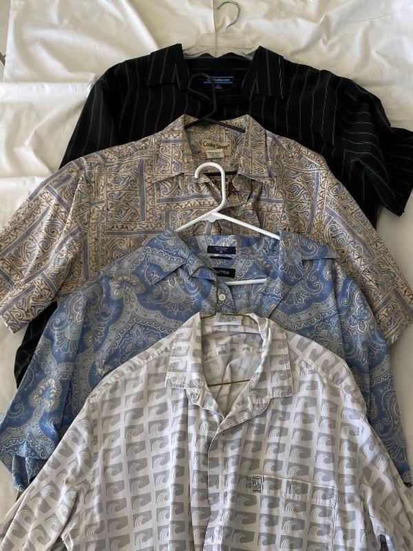 Set of 4 men's button front short sleeve shirts. Size XL. Previously worn. Brands include Surf Gear, Nautica, Cooke Street Honolulu, and Croft & Barrow. The Cooke Street shirt does have a spot on it near the bottom.