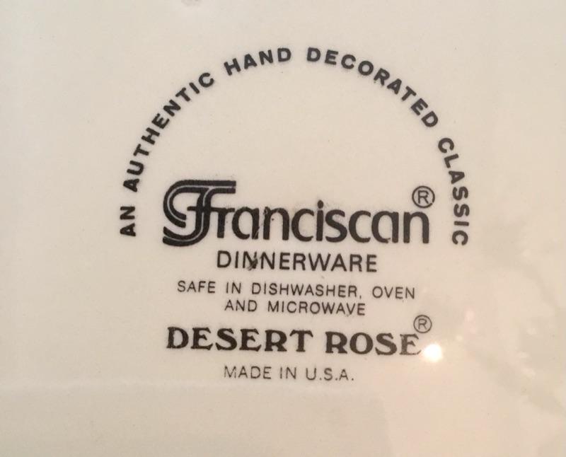 FRANCISCAN EARTHENWARE DESERT ROSE VINTAGE pink roses with green leaves YD#022-0174