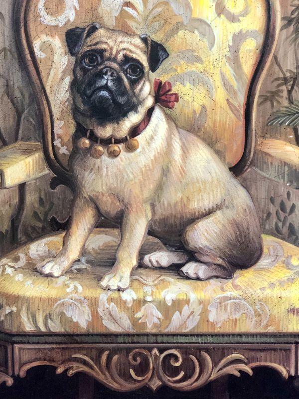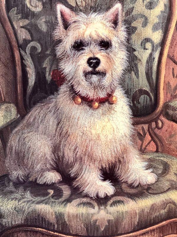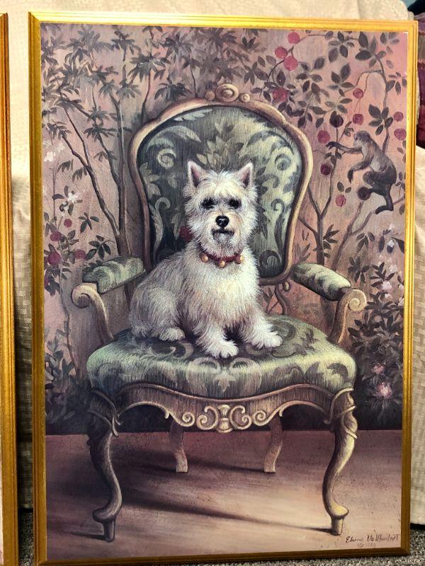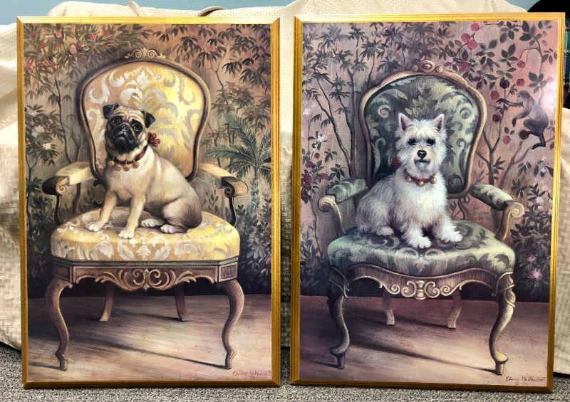 2 wall art prints DOGS on furniture - PUG and WESTIE in Victorian scene