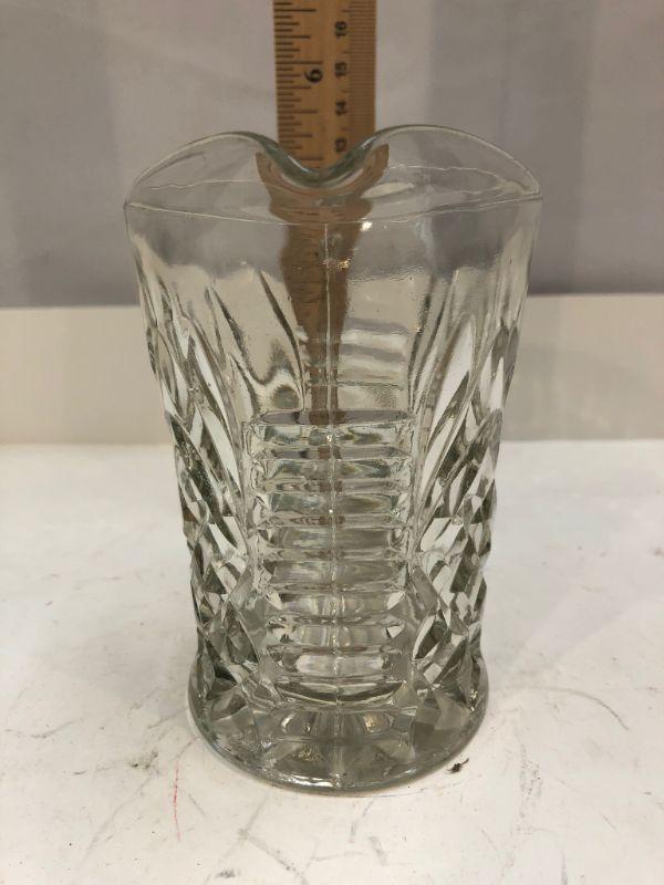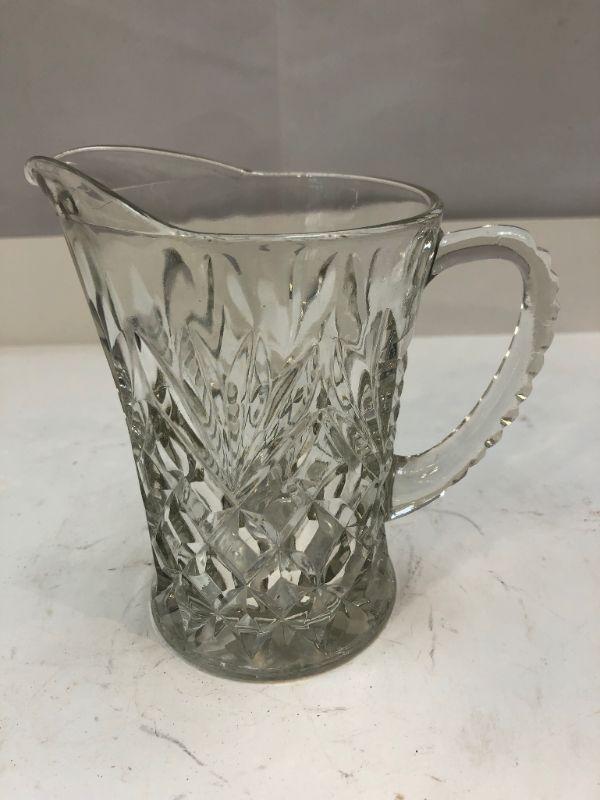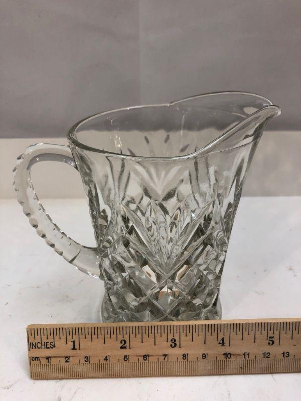 Small 6" creamer pitcher. Clear cut crystal. Good condition.